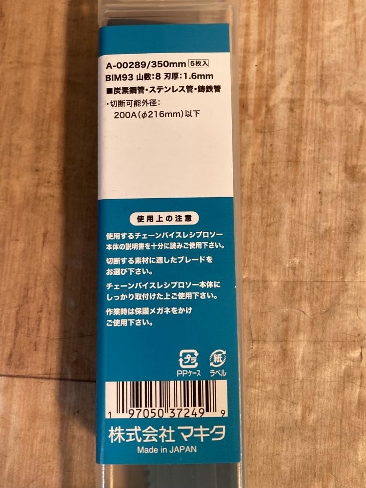 マキタ ■商品名 チェーンバイスレシプロソー刃 ■型番 BIM93 5枚入り |