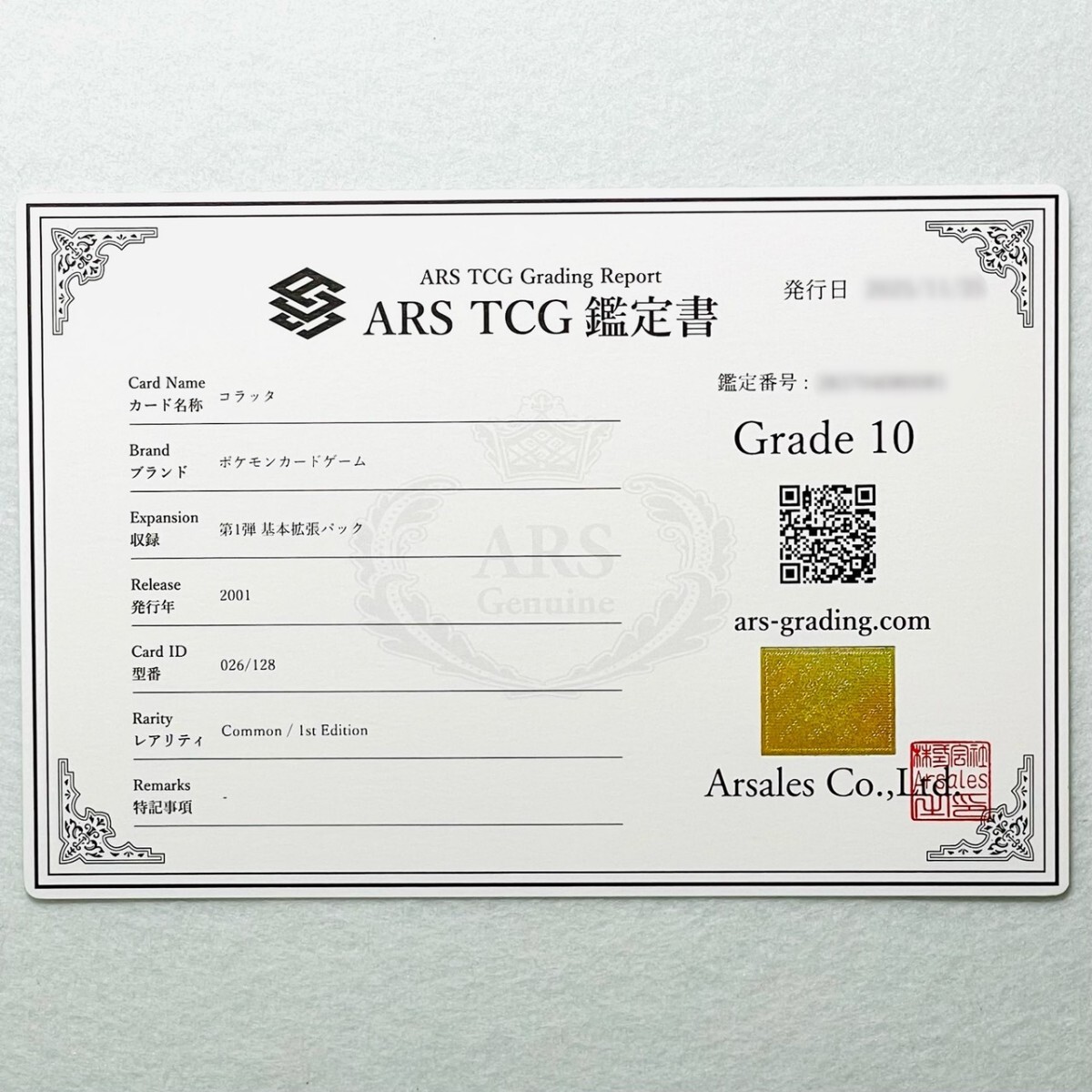 ARS鑑定様より高評価のGrade10をいただきました。世界的に希少価値と人気があるグレードです。