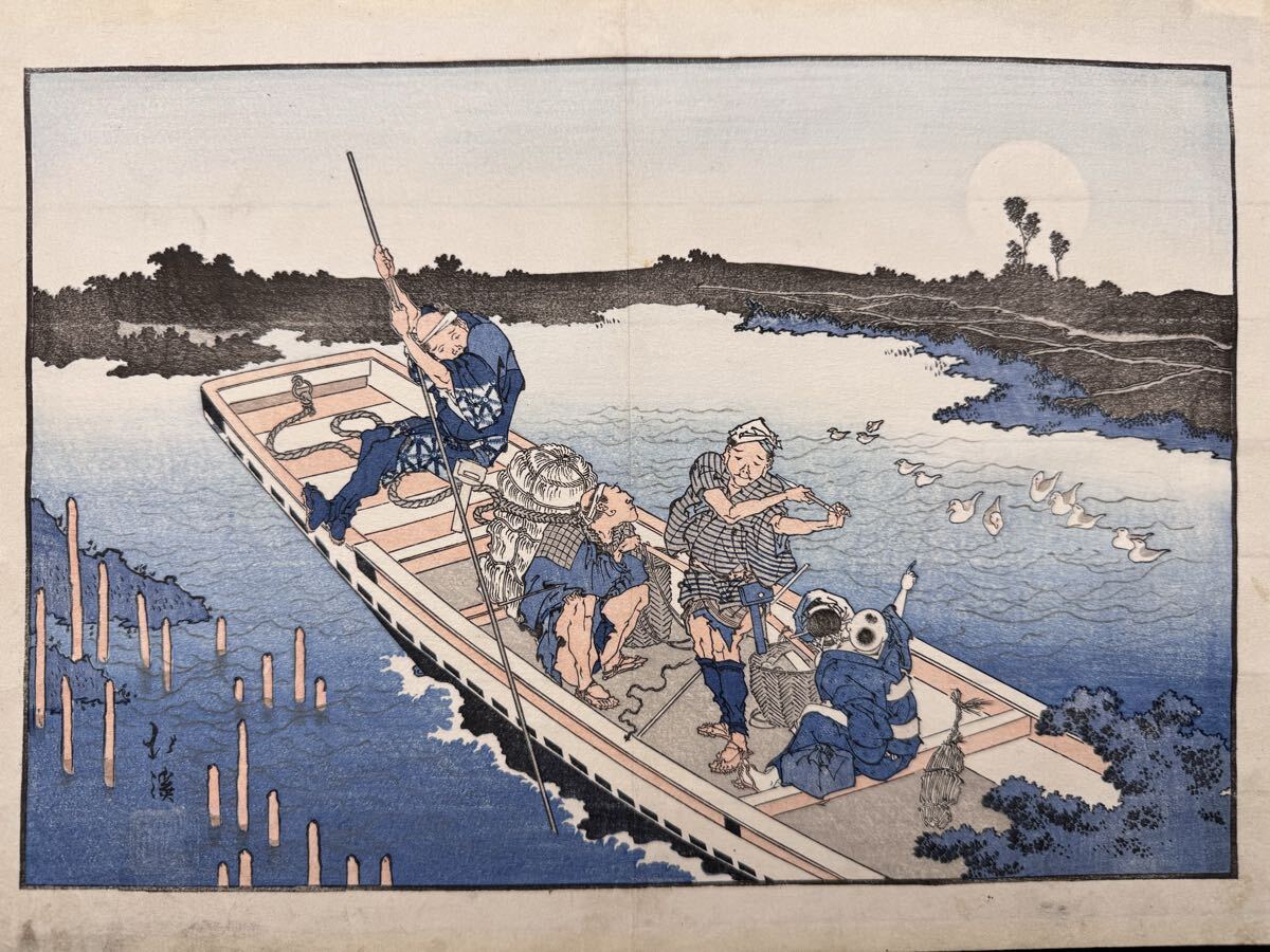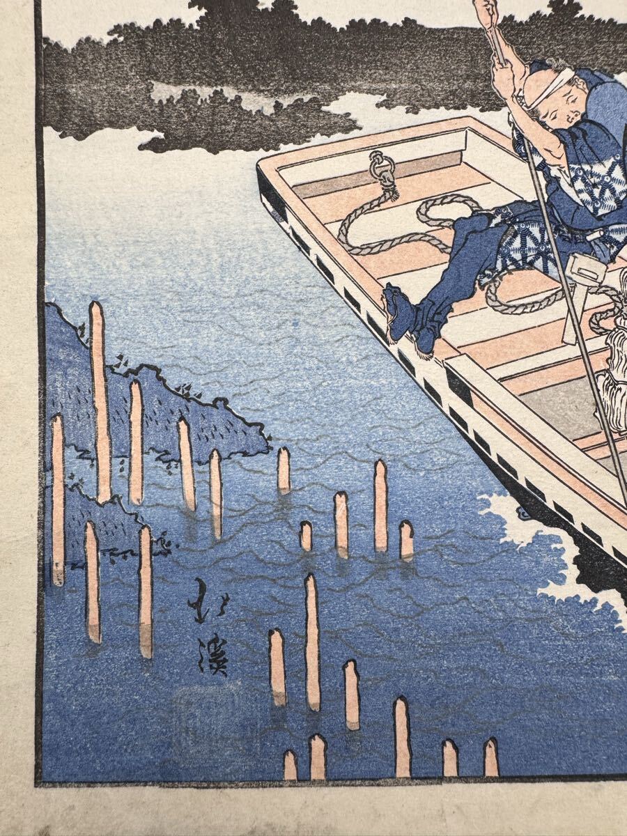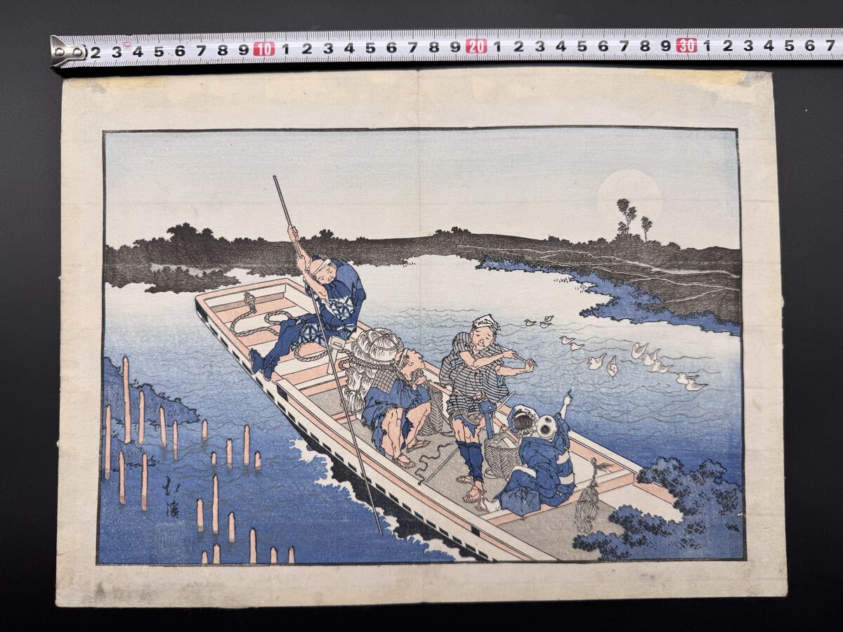 【真作】名作!本物浮世絵木版画 魚屋北渓「三都廼友会」江戸期 名所絵 大判 錦絵 保存良い 裏打ち 葛飾北斎の門人