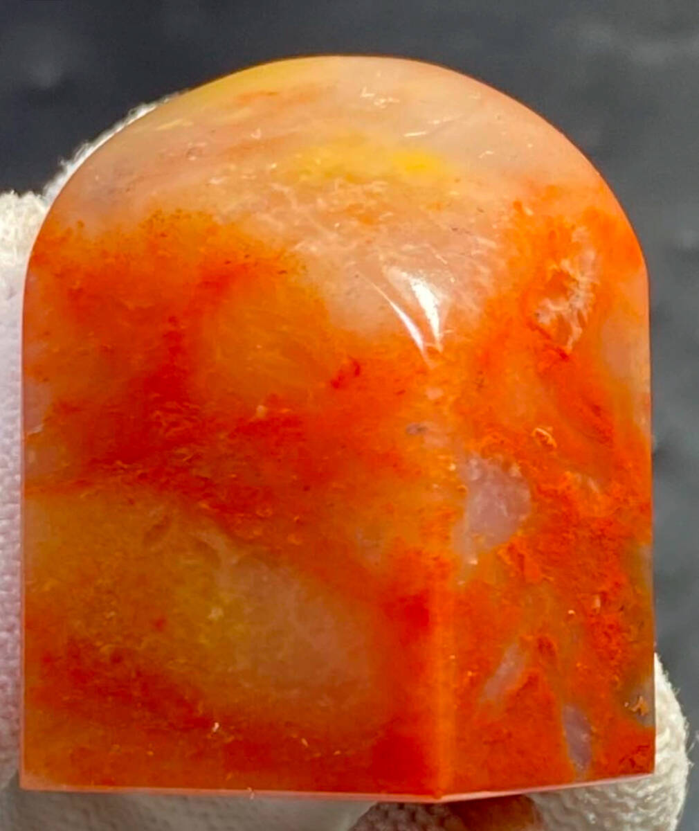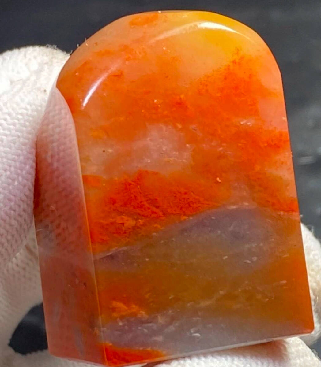 ◆寿山石とラオス石は気温の変化から守るために油(昔の化粧品に使われているもの)を塗ってあります。購入後も定期的に塗ることをお勧めします。当店ではほとんど扱っていませんが高級な寿山芙蓉石は油を塗ると逆に変色や割れを起こしてしまいますのでご注意ください。顔に擦って顔に付いている油をつけるのが一番無難です。一部の青田石と昌化石には蜂蝋を塗ってあります。紙やすりで落として使用してください。写真には写っていませんが後から小さい識別用のシールを貼ってありましてご迷惑をかけしますがそのまま発送させていただきます。
