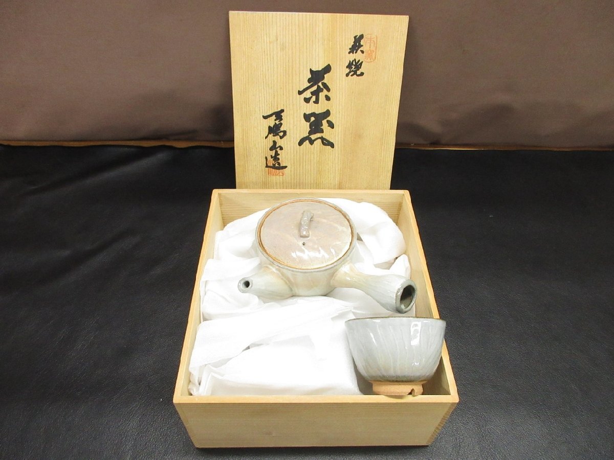 【YB-2618】未使用 伝統工芸品 萩焼 椿窯 天鵬山 廣瀬淡雅 御本手茶器揃 急須 湯のみ 6点セット 木箱 共箱有り 東京引取可【千円市場】