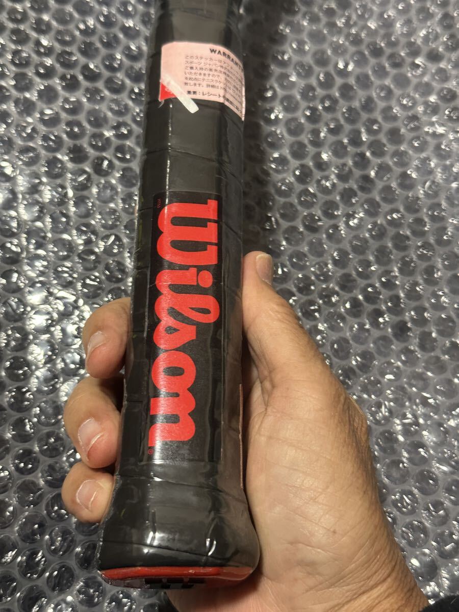 個人的にはsラケが好きでネットショップで新品を買い求めました。グリップのシュリンクを貼ったまま上からオーバーグリップを巻いて2ヶ月使ってました。写真のようにほとんど傷は見当たりませんが、あくまで中古品ですので中古品前提のお取引であることをご理解頂ける方とお取引できれば幸甚です。