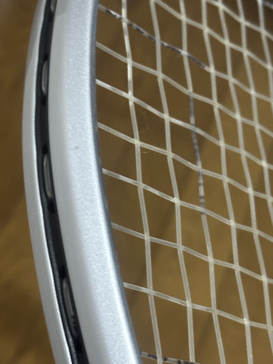 ガットはヘッド リフレックス MLT1.25を43ポンド張ってます。テニスユーチューバーのタイガーの部屋さんののインプレでは「非常に柔らかな打感とボールの飛ばしやすさが特徴的なスピン特化ラケット」とのことですが