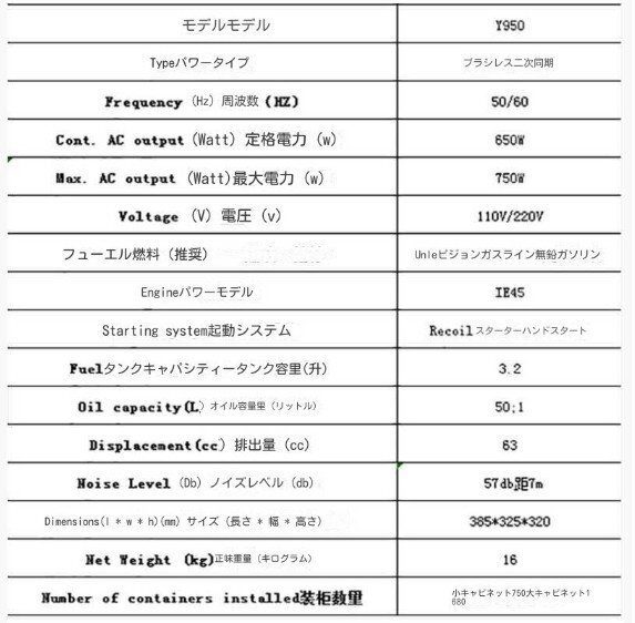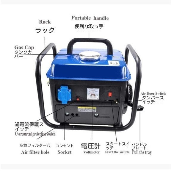 ガソリン発電機 小型ポータブル50HZ-60HZ 出力650 WIE 45動力100V