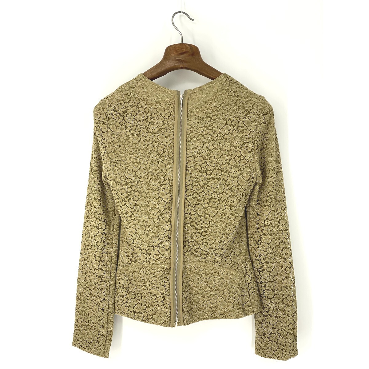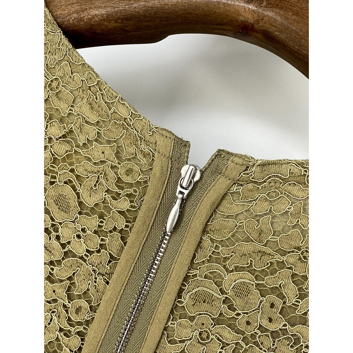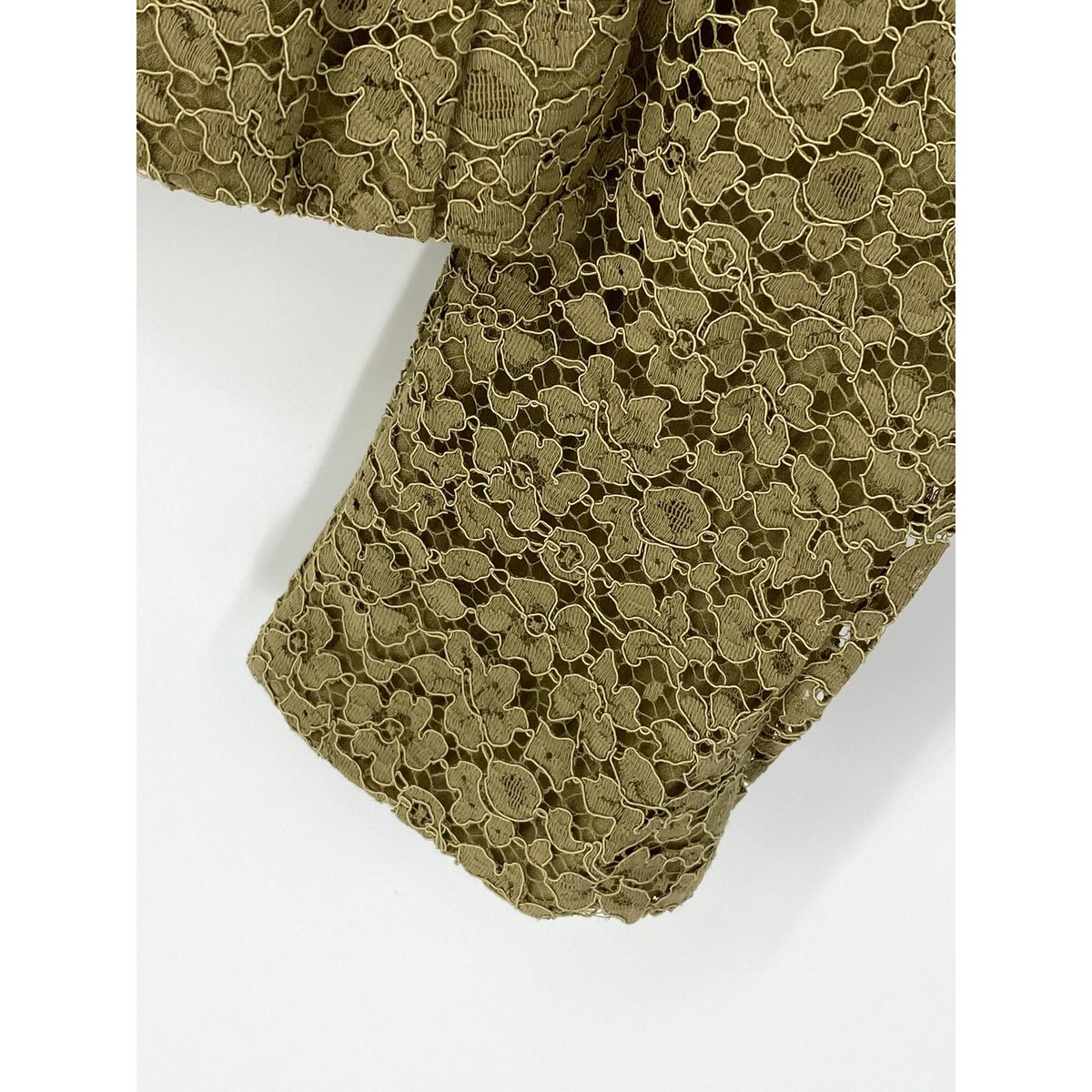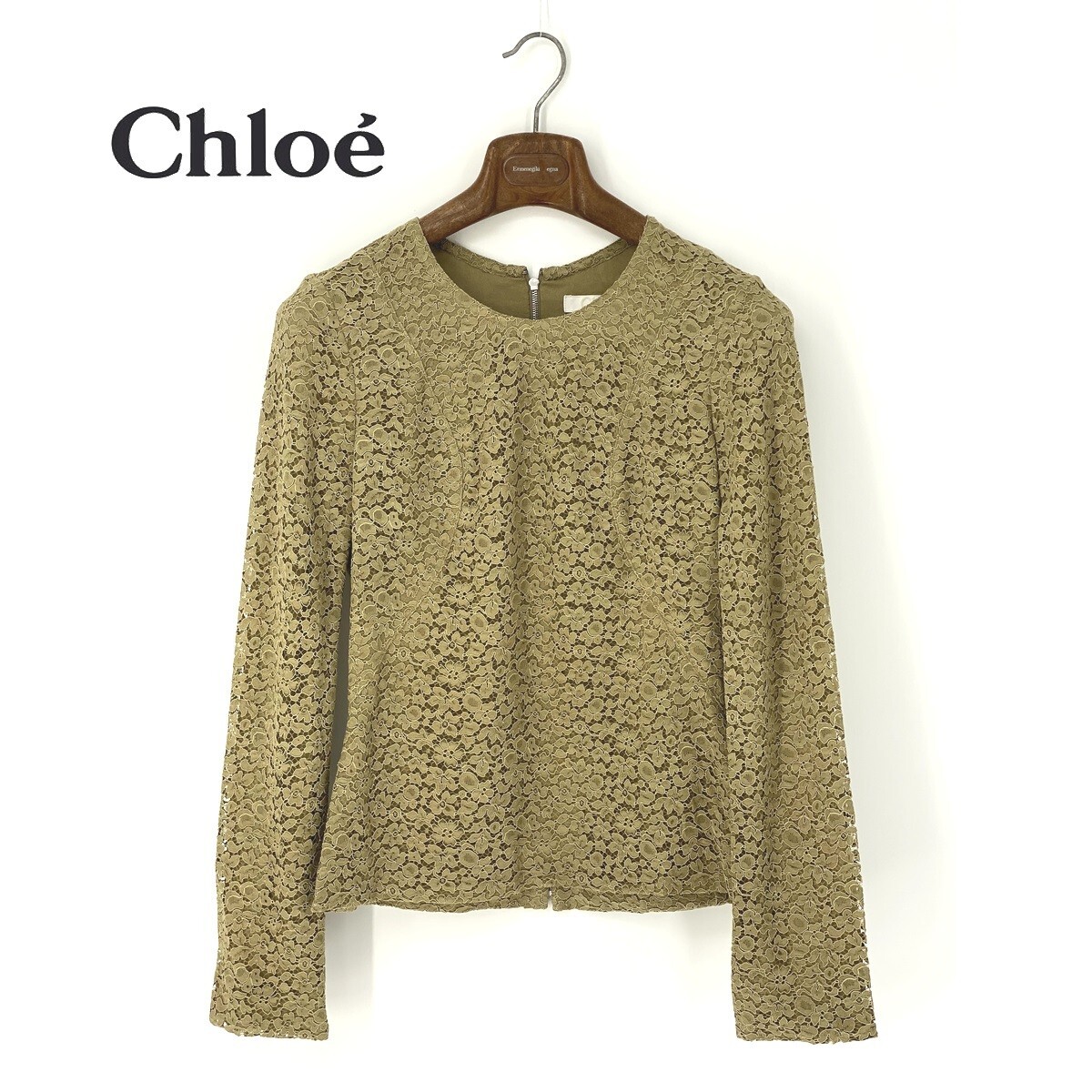A6934/極美品 春夏 CHLOE クロエ シルク 花柄 総柄 レース 総刺繍 長袖 ドレス ブラウス カットソー Tシャツ 34程 カーキ/レディース