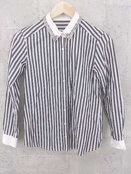 ◇ green label relaxing グリーンレーベル UNITED ARROWS 装飾 ストライプ 長袖 シャツ 36 ホワイト ブラック *