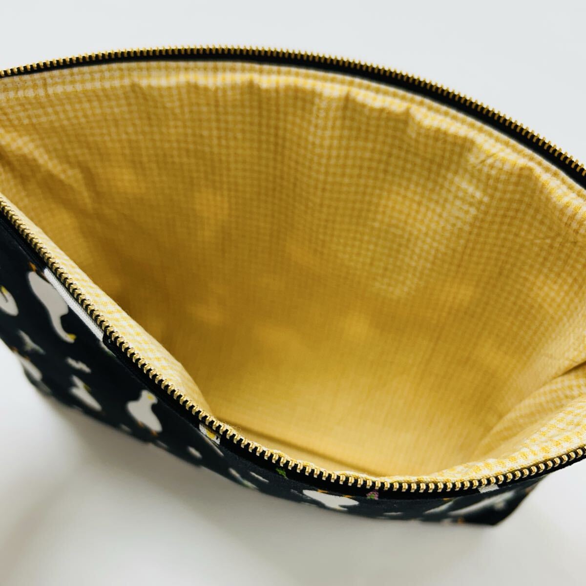 表布に接着綿を貼ってありますので、厚手でふんわり感がありながら、しっかりしたポーチに仕上がっています。