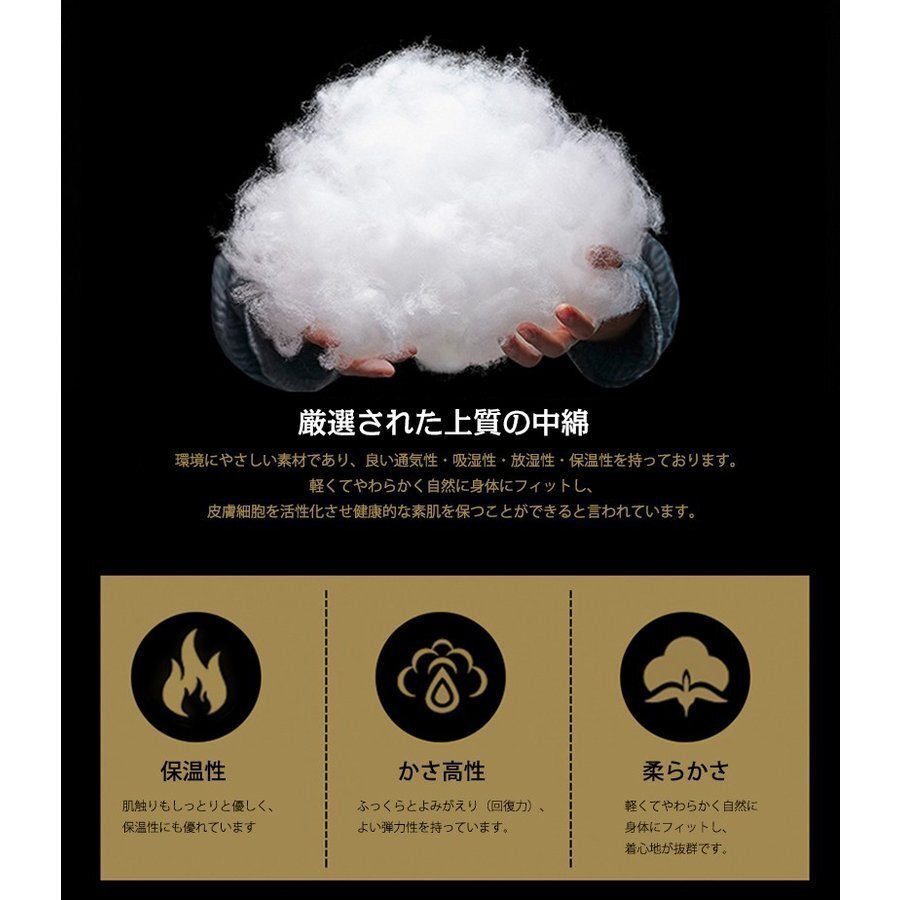 着膨れを抑える程よい中綿で保温性も損なわずすっきりシルエット。