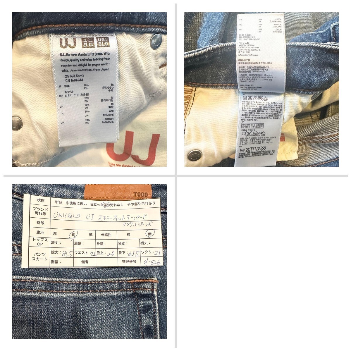 UNIQLO UJ スキニーフィットテーパードアンクルジーンズ XS〜S 8A46B2
