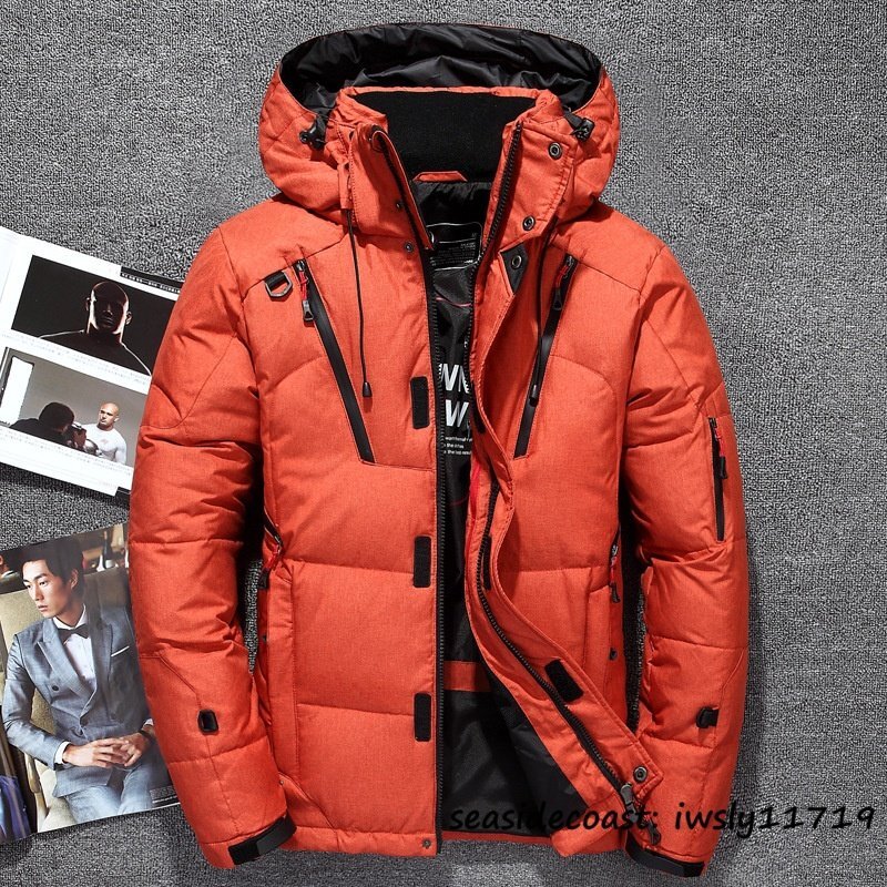 特売■冬新品 大人気 ダウンジャケット メンズ スキーウェア ダウンコート アウトドア ショートコート ジャンパー ブルゾン オレンジ L