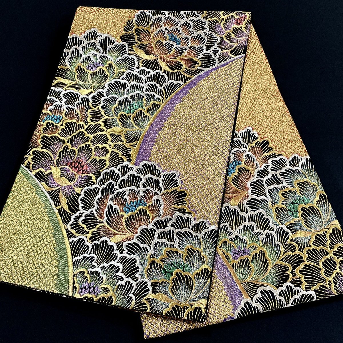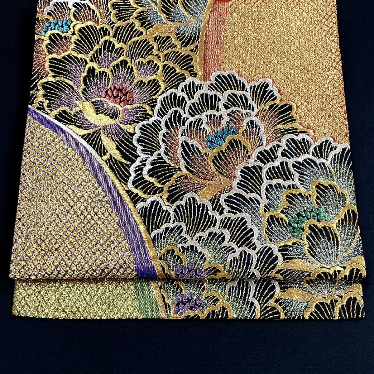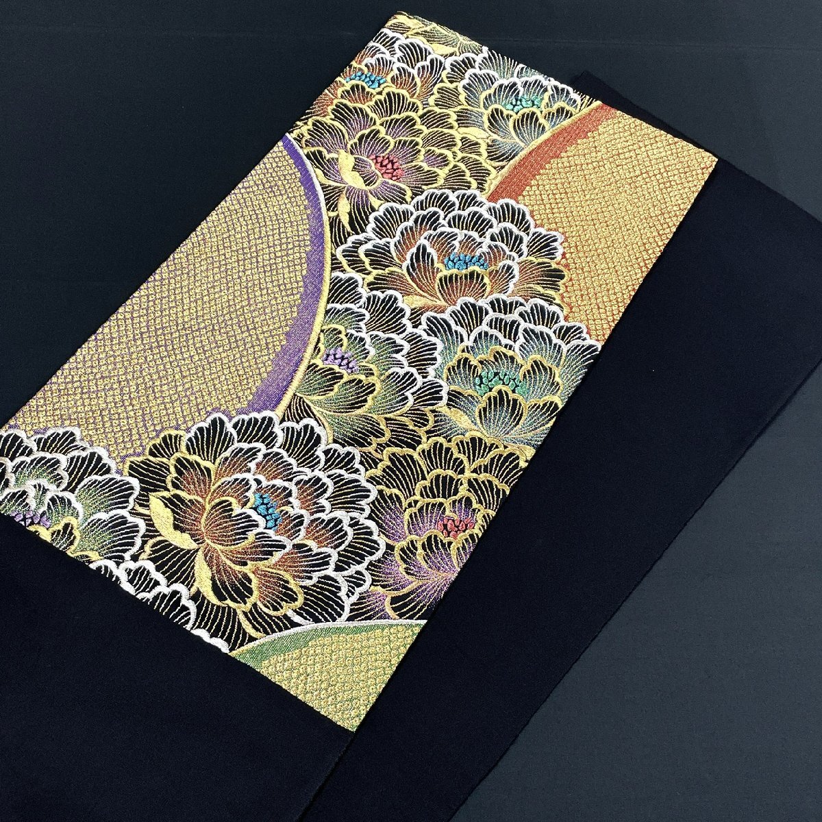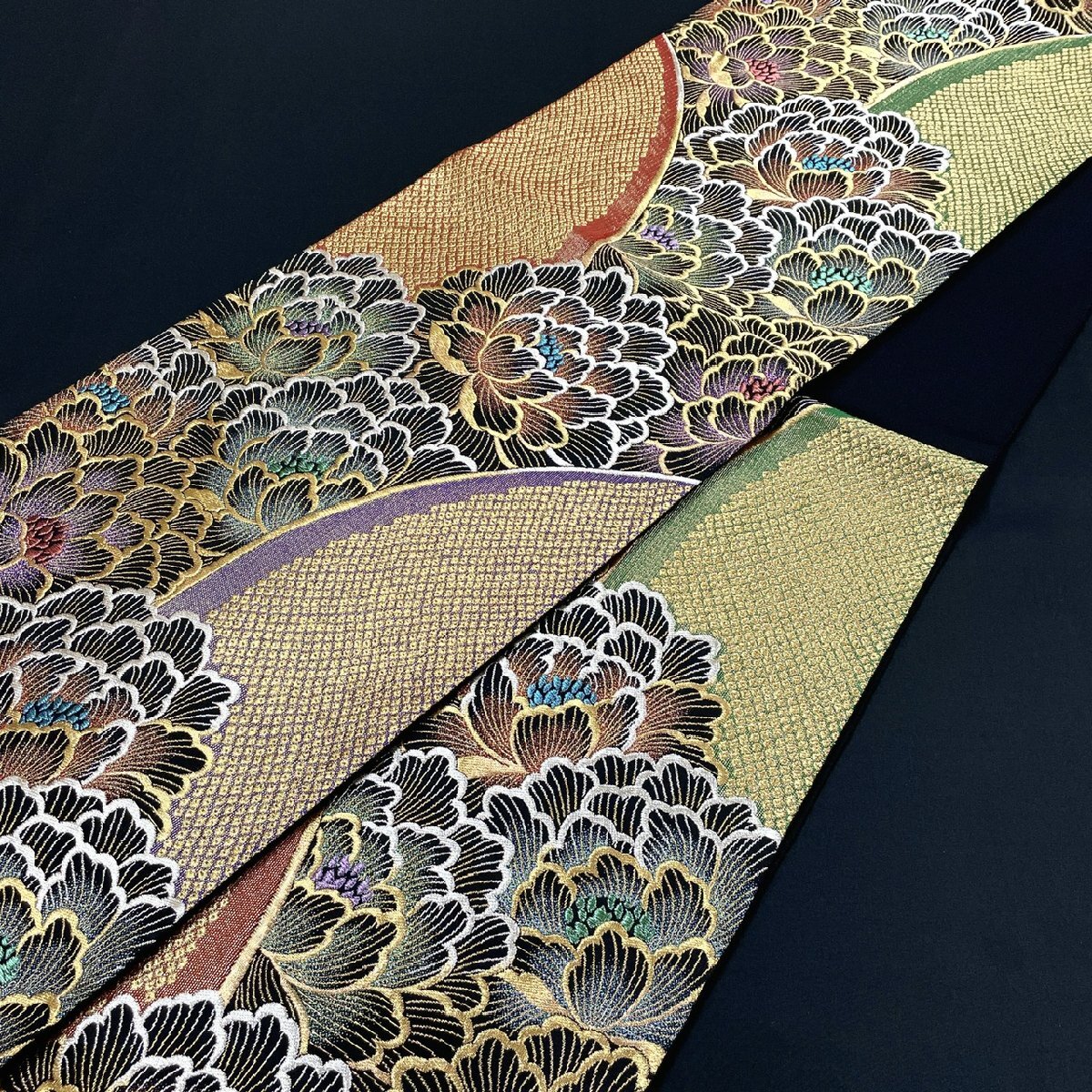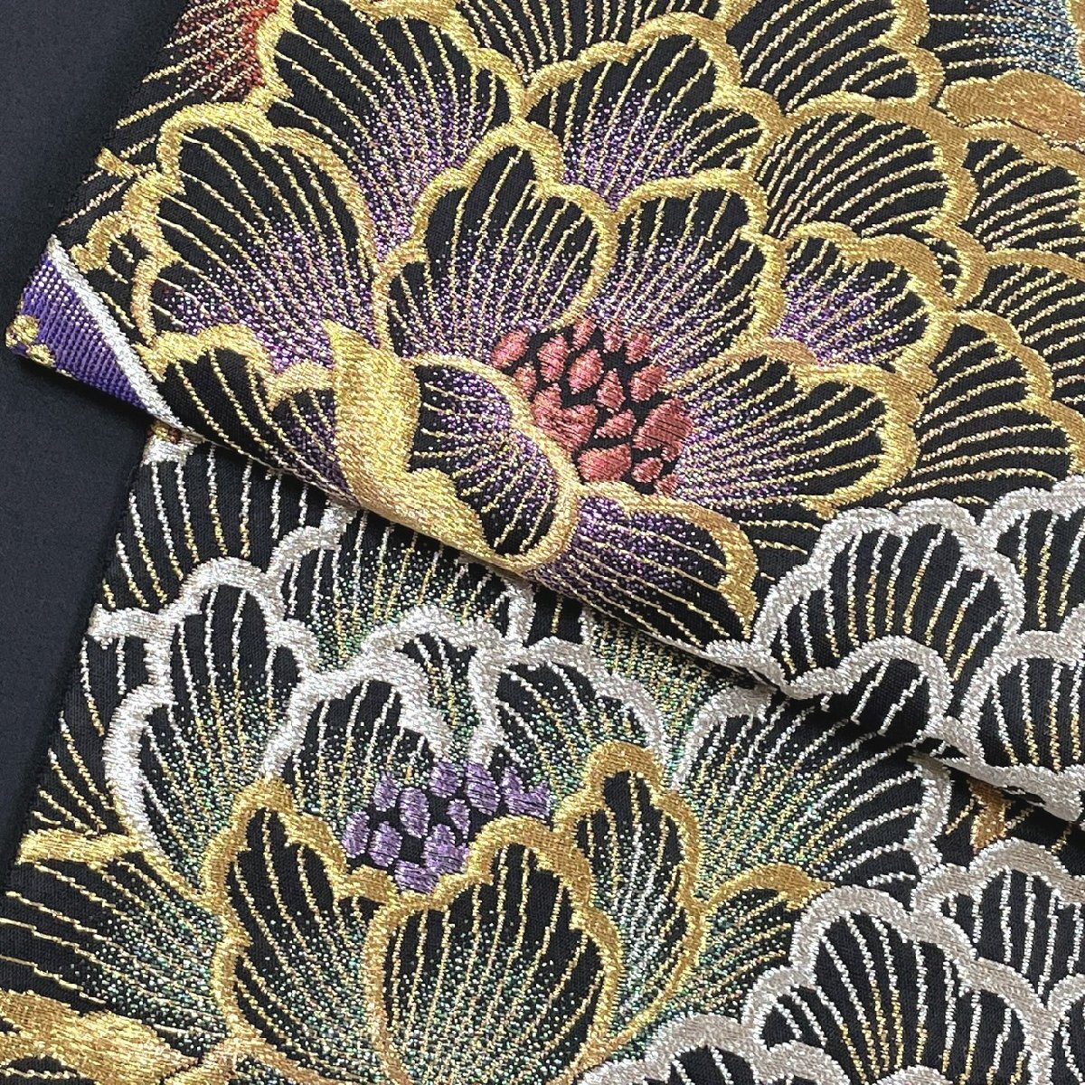 着物月花 じゅらく 煌びやかな花 袋帯 六通柄 正絹 金銀糸 西陣織物 ob7821