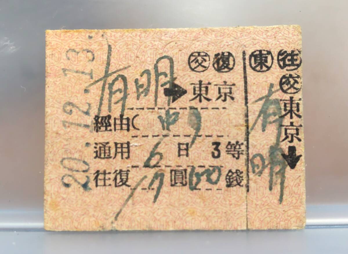 SS1598   運輸省鐵道総局 補充式往復乗車券 昭20【 東京 ー 有明 】