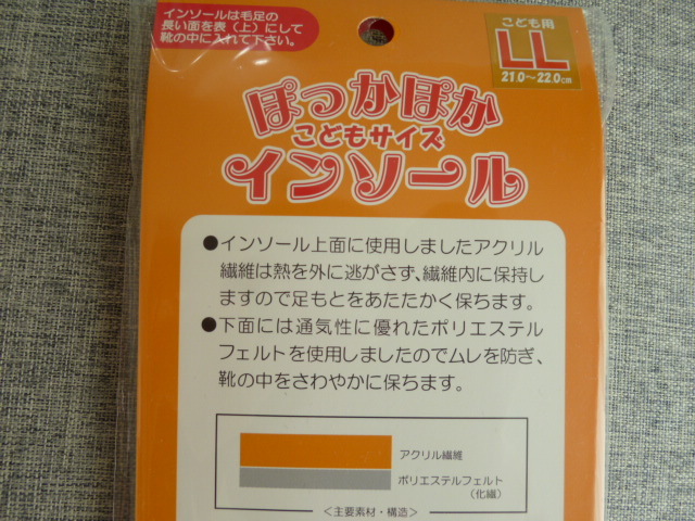 ★未開封★ぽっかぽか 子供サイズインソール  21~22cm  LLサイズ★長靴にピッタリ 幅広設計★温かい 中敷き