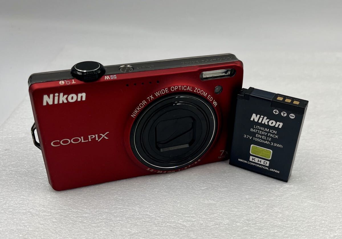 1円〜④【動作確認済み】Nikon ニコン COOLPIX S6000 レッド コンパクト デジタルカメラ コンデジ 本体 バッテリー付き