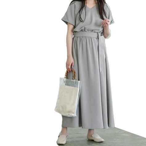 3.ウエスト回りのシャーリングでメリハリ◎優雅なシルエット