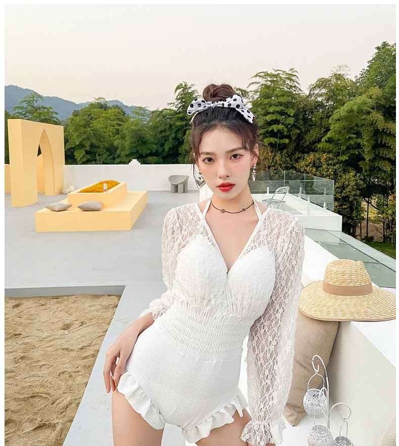 ・肩から手首までは透け感のある素材で大人っぽさを演出。