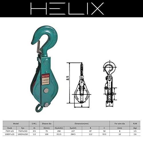サイズ: 1000kg HELIX 強力型滑車 一車スナッチ スナッチブロック ブロック滑車 フック式 プーリーブロックレッカー車 積載車 ワイヤーロープ (1000kg)