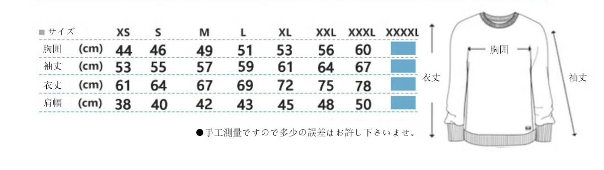 【XXXL】: 胸囲-60cm、袖丈-67cm、衣丈-78cm、肩幅-50cm
