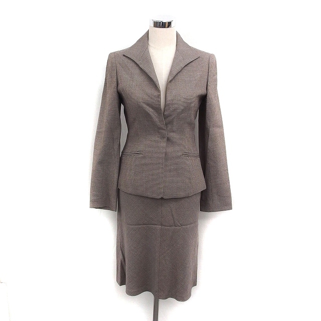 アンタイトル UNTITLED スカートスーツ ツイード ジャケット フレアスカート ひざ丈 シルク混 ウール 2 モカブラウン /FT14 レディース