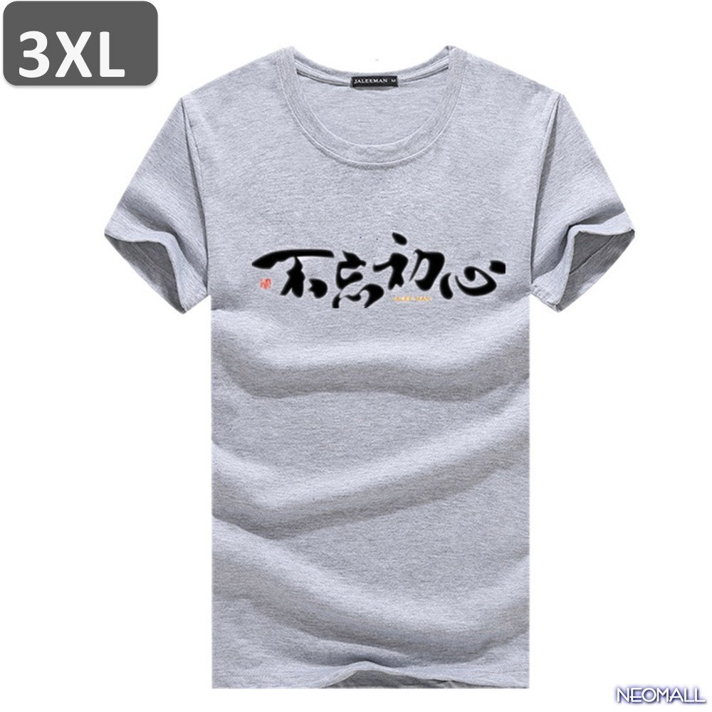 夏の定番 ☆ 丸首 半袖 Tシャツ【463】 グレー 3XLサイズ トップス シャツ シンプル イラスト デザイン 春夏