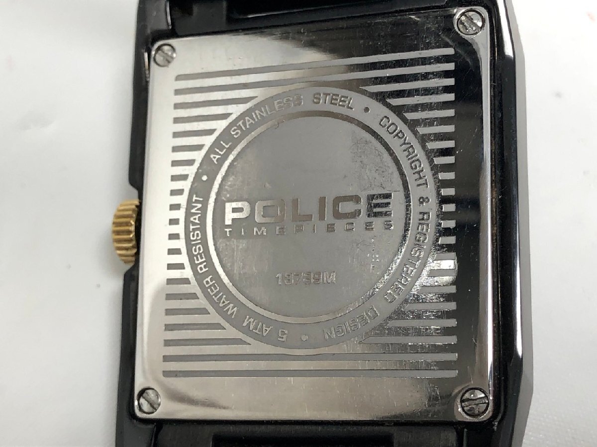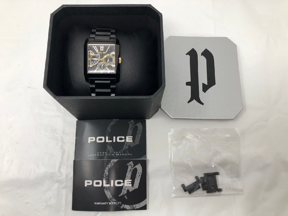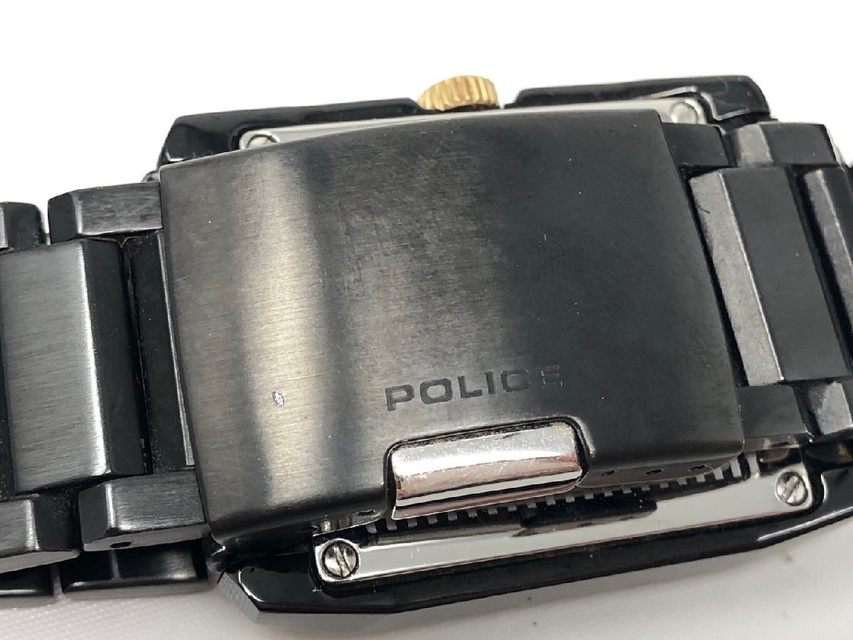 ◆POLICE ポリス 腕時計 13789M クオーツ ステンレス デイデイト 黒文字盤 スクエア 箱付き 中古◆18788★