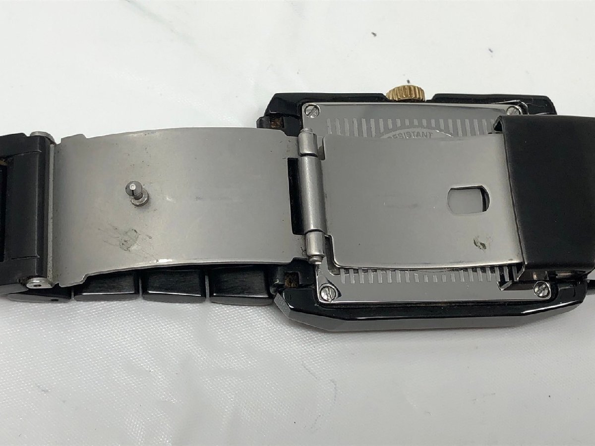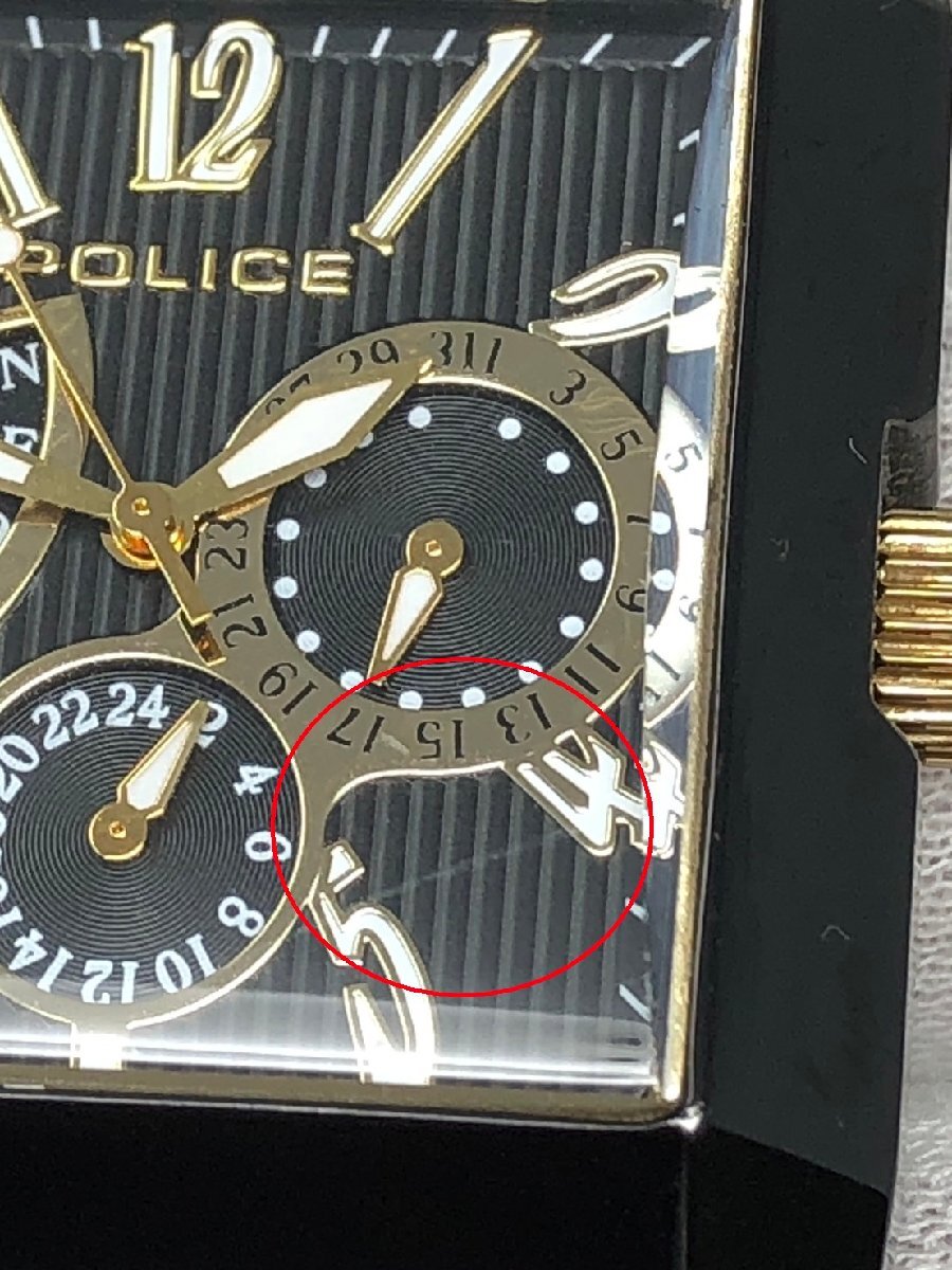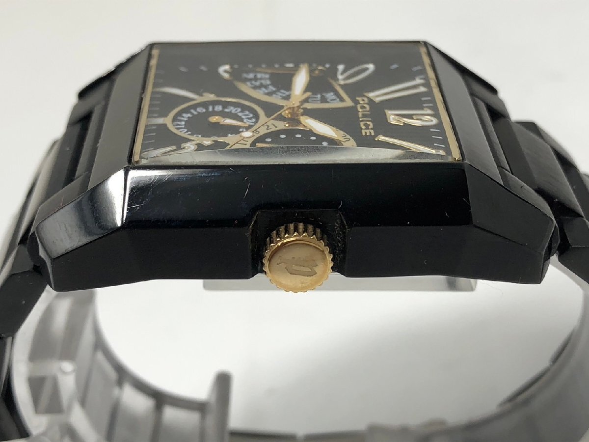 ◆POLICE ポリス 腕時計 13789M クオーツ ステンレス デイデイト 黒文字盤 スクエア 箱付き 中古◆18788★