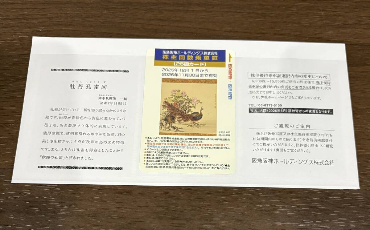 阪急阪神HD 株主優待乗車証 25回 カードです。