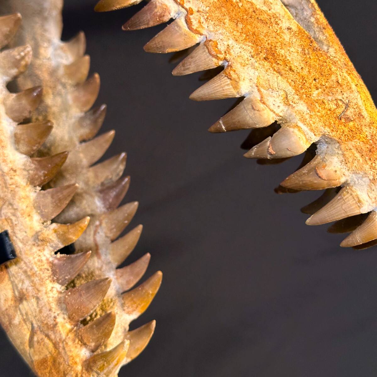 ※具体的には石膏等による補修、接着の痕跡など。なお、化石はナチュラルペイント(発掘現場の土砂と水に接着剤を混ぜ、ペイントする技法)が施されています。ナチュラルペイントは、オリジナル率を保ちながら化石の強度を上げるための技法であり、モロッコ現地で広く用いられています。
