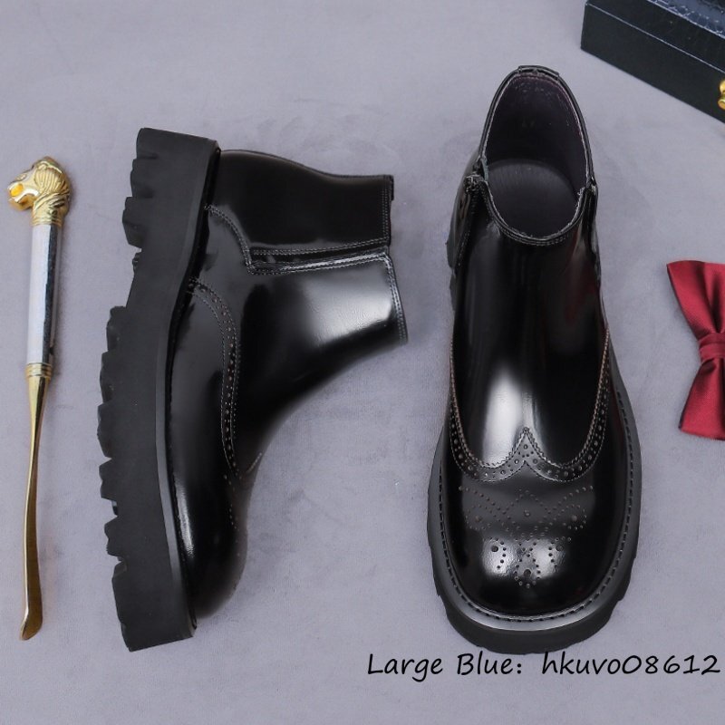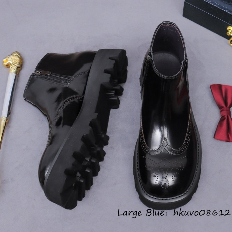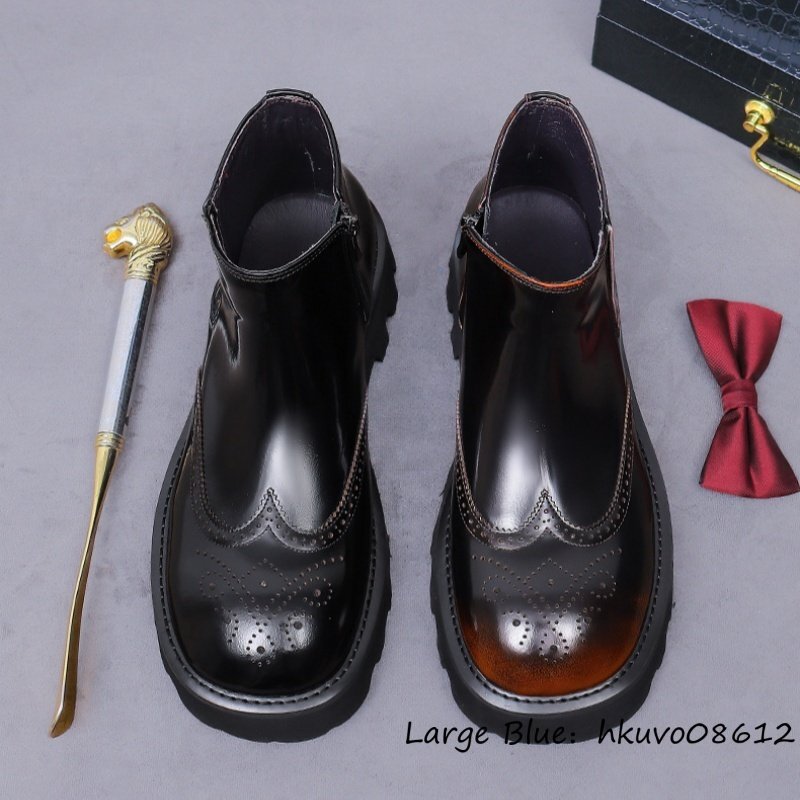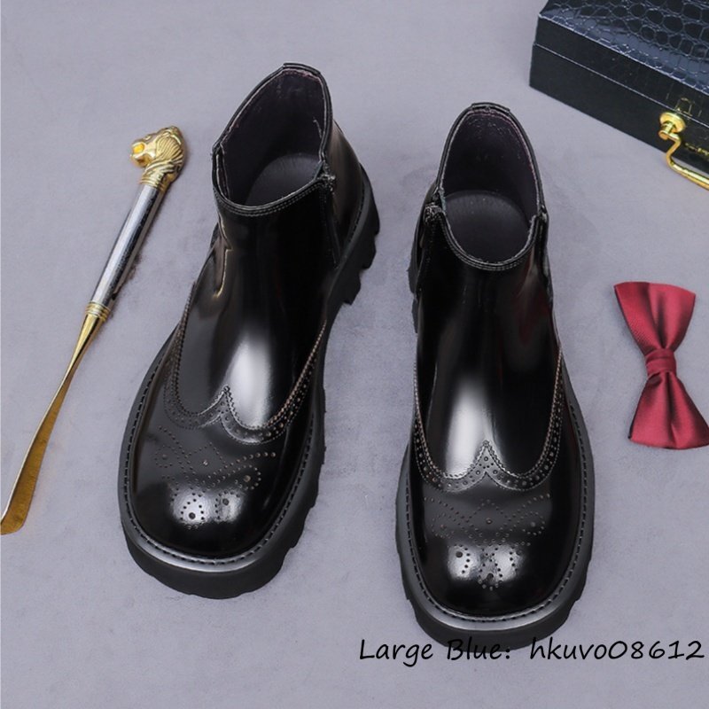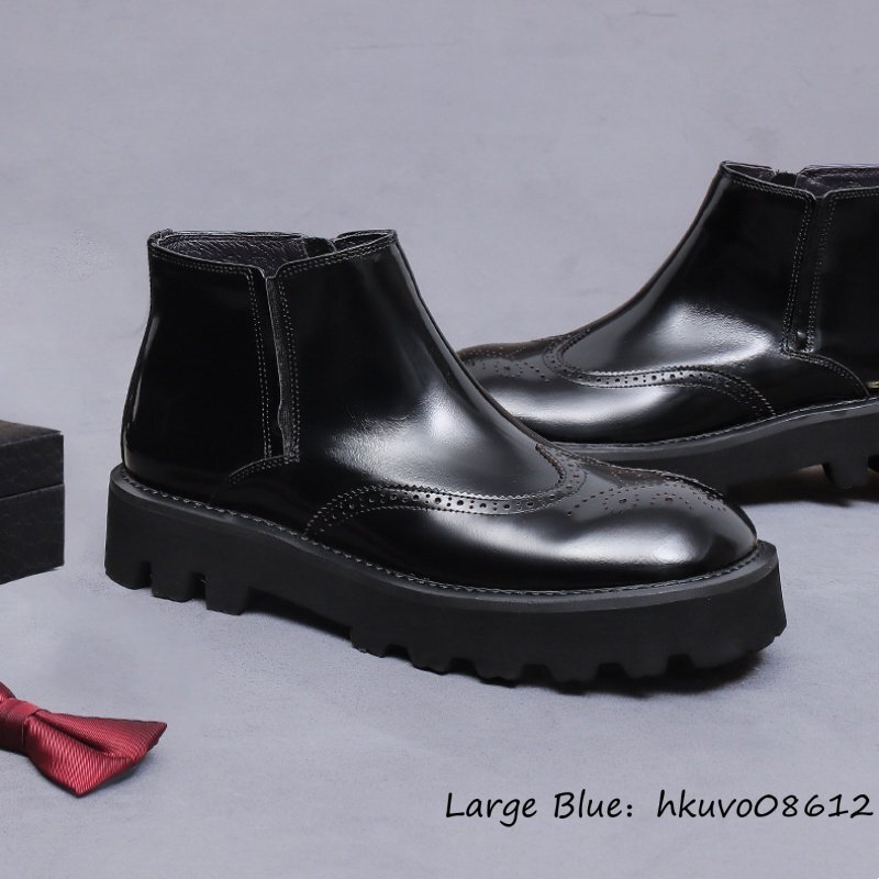 新品■メンズ チェルシーブーツ 漆皮 厚底 高級牛革 レザーブーツ ショートブーツ 革靴 レトロ イタリア ストレートチップ ブラック 26.5cm