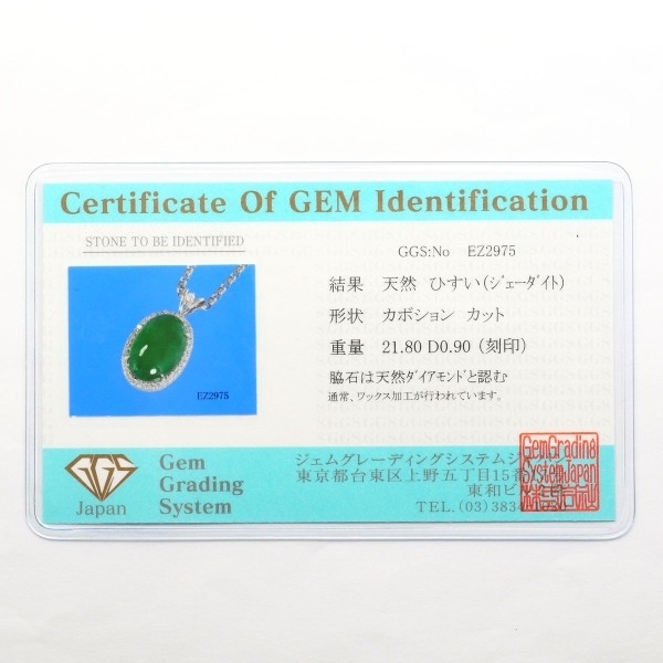 | PT900 PT850 ネックレス ヒスイ 21.80 ダイヤ 0.90 カード鑑別書 総重量約32.5g 約50cm 中古 美品 送料無料 | |