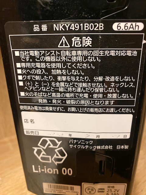 ☆Panasonic パナソニック 電動アシスト自転車バッテリー NKY491B02B  6.6Ah A688