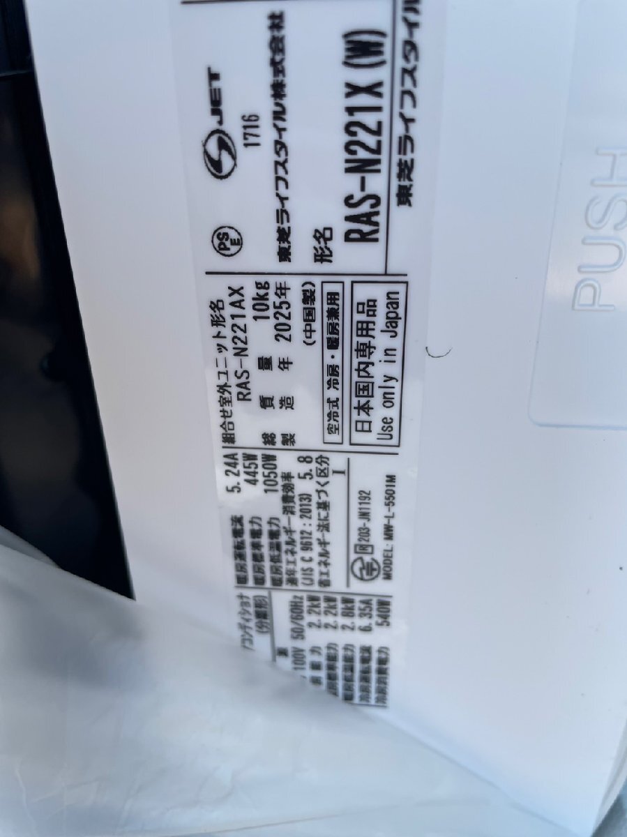 東芝 RAS-N221X エアコン 室内機のみ 未使用品の出品となります。状態は未使用品ですが、長期倉庫に保管された為、梱包の痛みあります。未使用品として入荷してきてはおりますが、未確認ですので本体に凹みや傷が有るかもしれません。動作につきましては室外機が有りませんので動作未確認となります。動くかどうかの保証は致しかねますので、動作及び外装などノークレーム・ノーリターンでお願いします。超特価の19800円スタートでお願いいたします。落札価格に別途消費税がかかります。エアコンの室内機のみ、室外機のみの商品はほかの販路でも販売させていただいておりますので、ご希望の場合はなるべく早くご入札をお願いします。入札がない場合は取り消しをすることがございますのでご注意ください。ほかにも多数出品しておりますのでよろしくお願いいたします。