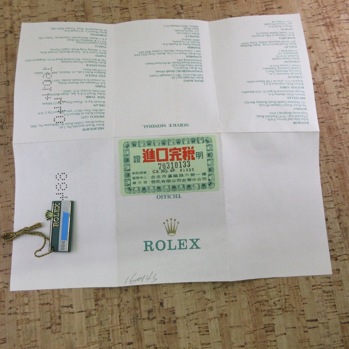 商品説明 | ■ROLEX Garantie ギャランティ 16014 デイトジャスト 保証書 タグ付き 付属品としてのグリーンタグのシリアル番号は保証書と一致しております。 中古品なので使用に伴う多少のすれなど御座いますが比較的きれいな状態です。 ■細部に関しては写真にて御確認下さい |