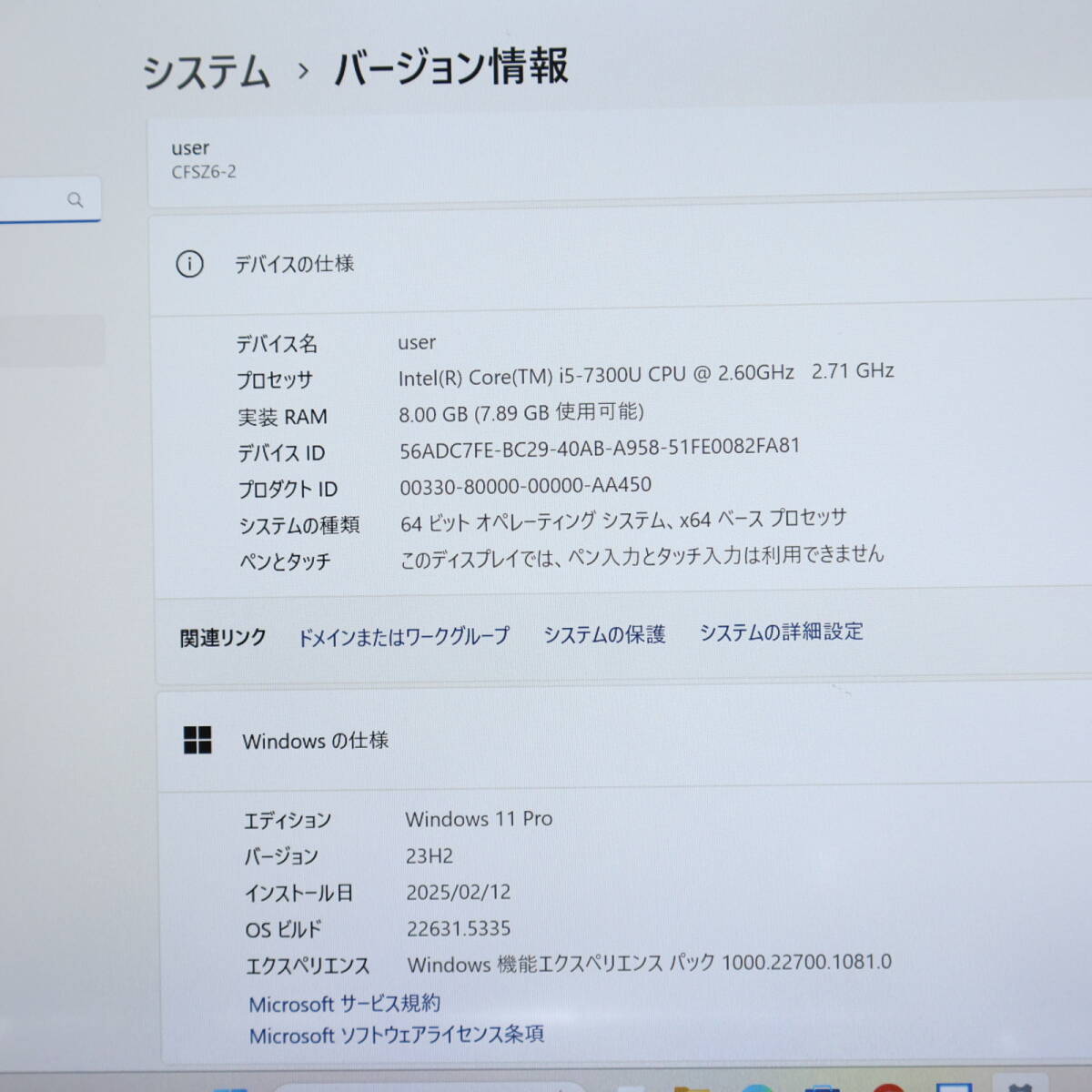 ★完動品 高性能7世代i5!SSD256GB メモリ8GB★CF-SZ6 Core i5-7300U Webカメラ Win11 MS Office2019 H&B ノートパソコン★P89010