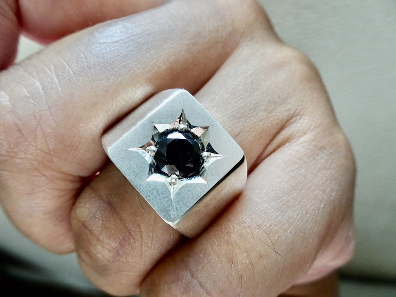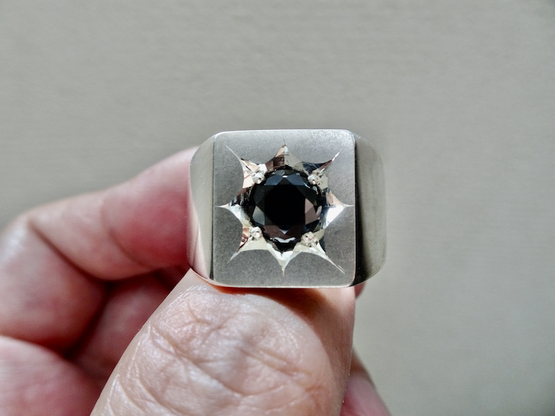 | ■ ■ 商品名: 仁尾彫金『一つ星ブラックジルコニア印台リング』 ■ ■ |
