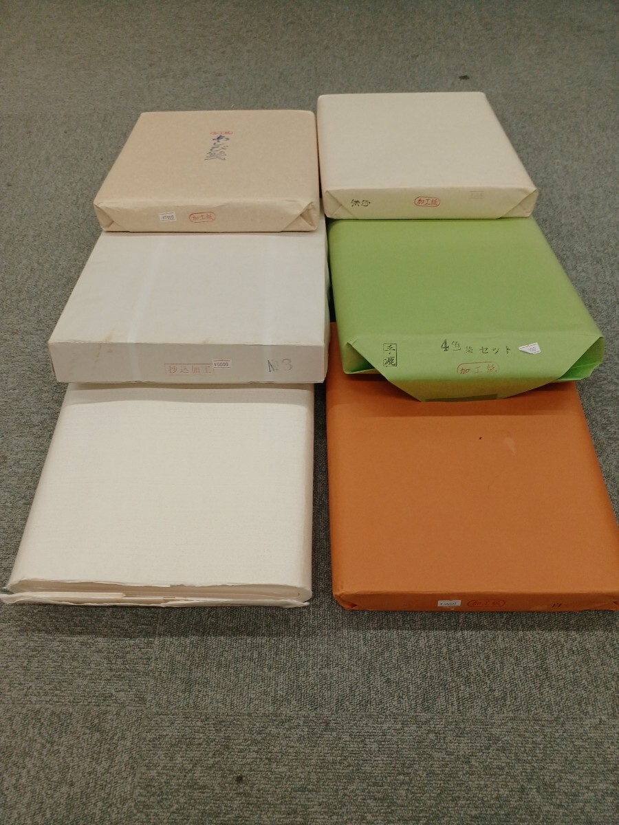 ■H.F■ あしび箋 白糸 No.3 4色セット あおい 白 600枚 35×135cm 加工紙 条幅 半切 書道 手漉和紙 手漉 書道用紙 書道 画仙紙 [テ]