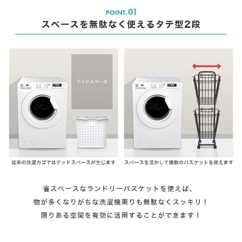 通常のバスケットを分別用に2つ並べて置くと幅を取り、上部にデッドスペースが生まれてしまいます。 こちらの商品は幅約38cmに2つのバスケットを縦に並べることが可能。 デッドスペースを活用することで物が多くなりがちな洗濯機まわりも無駄なくすっきり。 狭くなりがちなスペースを有効に活用することができます。 2つのバスケットは取り外しも可能で、持ち手があるのでベランダに運ぶ時なども便利にお使いいただけます。 キャスター付きで、ラックごとの移動もスムーズです。 ランドリー以外にキッチンの食品ストッカー、リビングの雑貨入れ、おもちゃ収納も使えます! 【商品仕様】 カラー:アースグレー サイズ:(約)幅37.5×奥行き37×高さ107cm バスケット内寸:(約)直径33×高さ37cm 重量:(約)3kg 容量:(約)50L(上段25L、下段25L) バスケット耐荷重:(約)10kg 素材:スチール、ナイロン 【注意事項】 ※お客様組み立てになります。(プラスドライバーはお客様でご準備ください。) ※スチール製の為、浴室ではご使用いただけません。 ※商品は、モニターによって色合いが異なって見える場合があります。 ※仕様・デザインは改良のため予告なく変更することがあります。 |