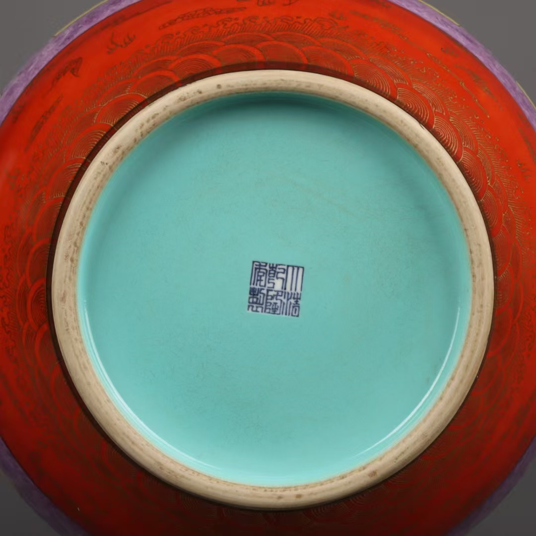 清時代 乾隆年制 拓金 紫金釉 花卉紋 鹿頭尊 花瓶 43*30cm 賞瓶 酒器 茶道具 古陶磁器 唐物 陶芸 時代物 骨董品 旧家蔵出し 中国古置物