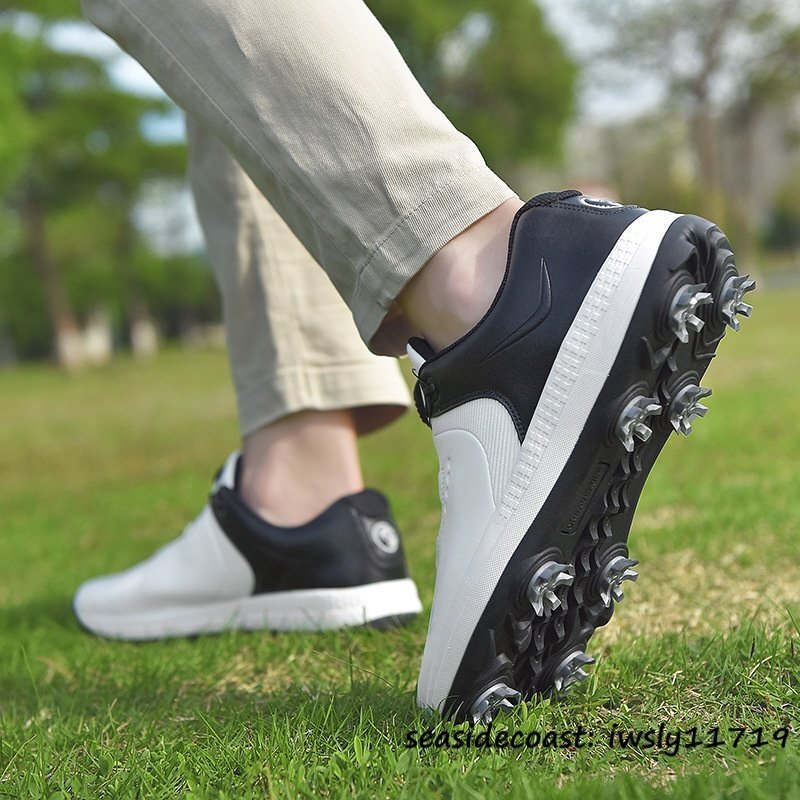 高級品 ゴルフシューズ 強いグリップ ソフトスパイク 運動靴 フィット感 軽量スポーツシューズ 新品 弾力性 通気性 防滑 耐磨 白/黒 24.5cm