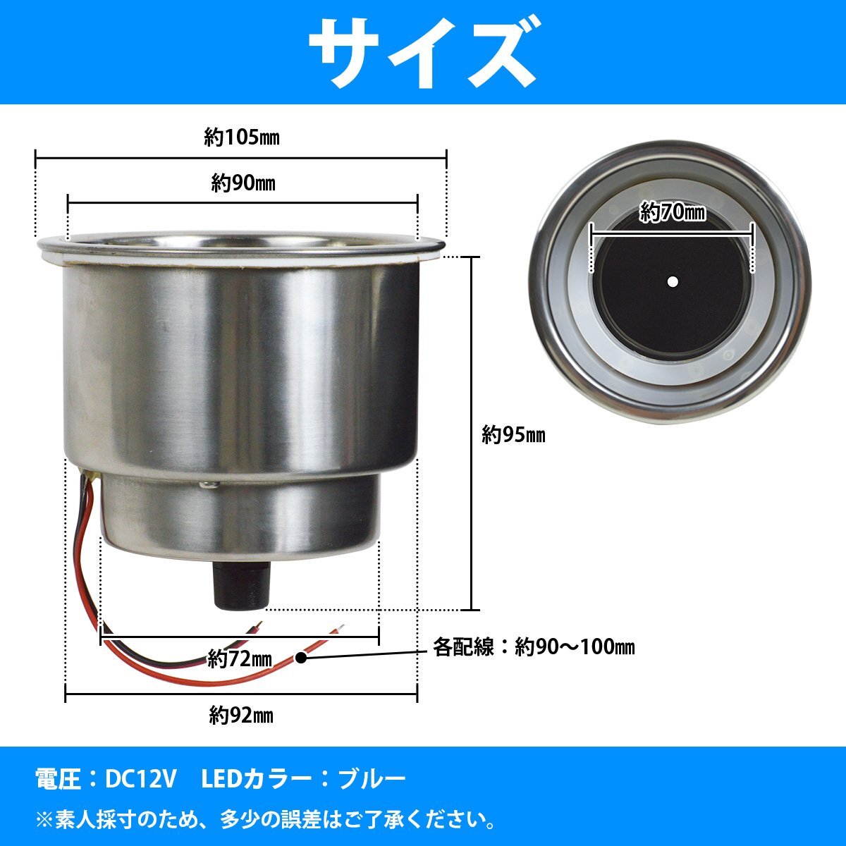 LED カップホールダー 100mm×98mm ブルー 青 DC12V 車 船 水上バイク ジェットスキー ゴムボート クルージング ドレスアップ カスタム