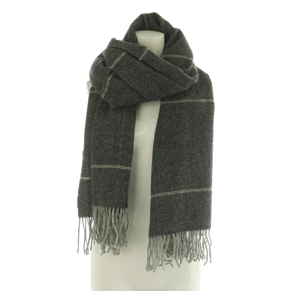 アクアスキュータム AQUASCUTUM ストール ヘリンボーン柄 フリンジ グレー /MI レディース
