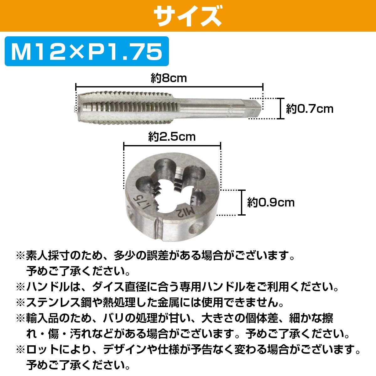 『M12×P1.75』 タップダイス セット 目立て ネジ 山 修正 めねじ 再生 ねじ 穴 修復 補強 耐久性向上 雌ネジ 補修 工具
