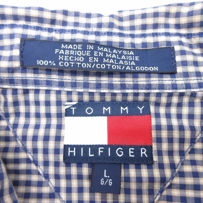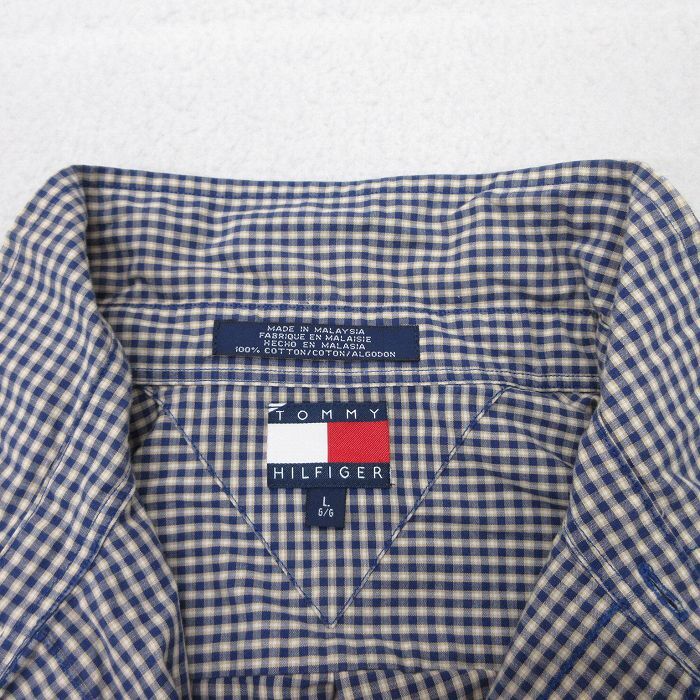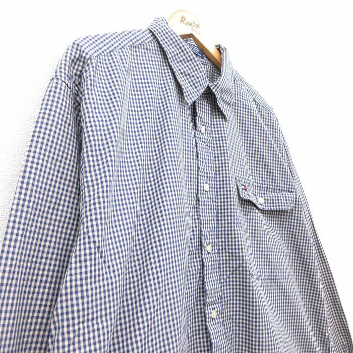 【商品名】 XL★古着 トミーヒルフィガー 長袖 ブランド シャツ メンズ 90年代 90s ワンポイントロゴ コットン 紺他 チェック
