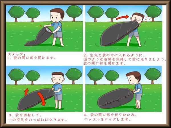 特徴 風に逆らって袋を開き、簡単にに空気を充填されます。