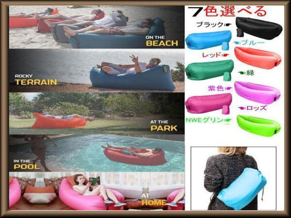 ポータブルエアーソファー ベット 収納バッグ屋外高級素材新品  選べる7色 蛍光グリーン 黒 ブルー 緑 パープル レッド ローズ y