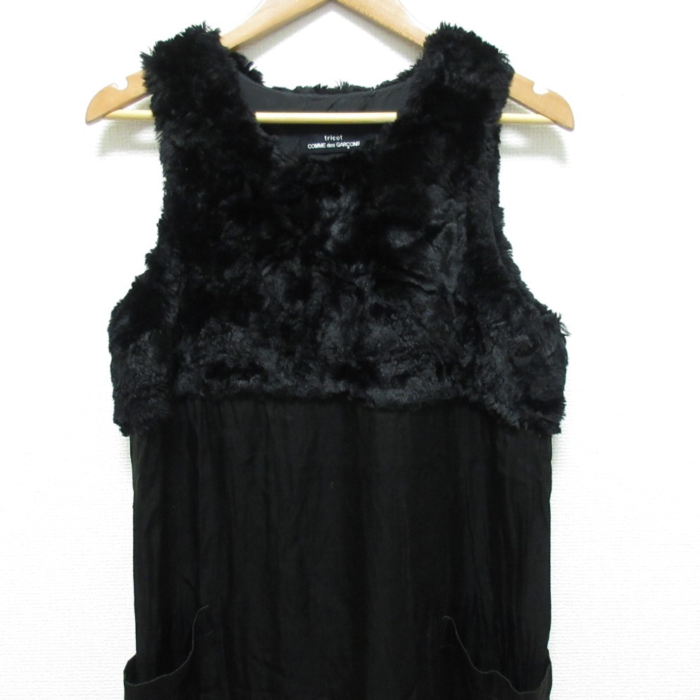 美品 tricot comme des garcons トリココムデギャルソン ボア サテンドッキングワンピース TA-080050 ブラック