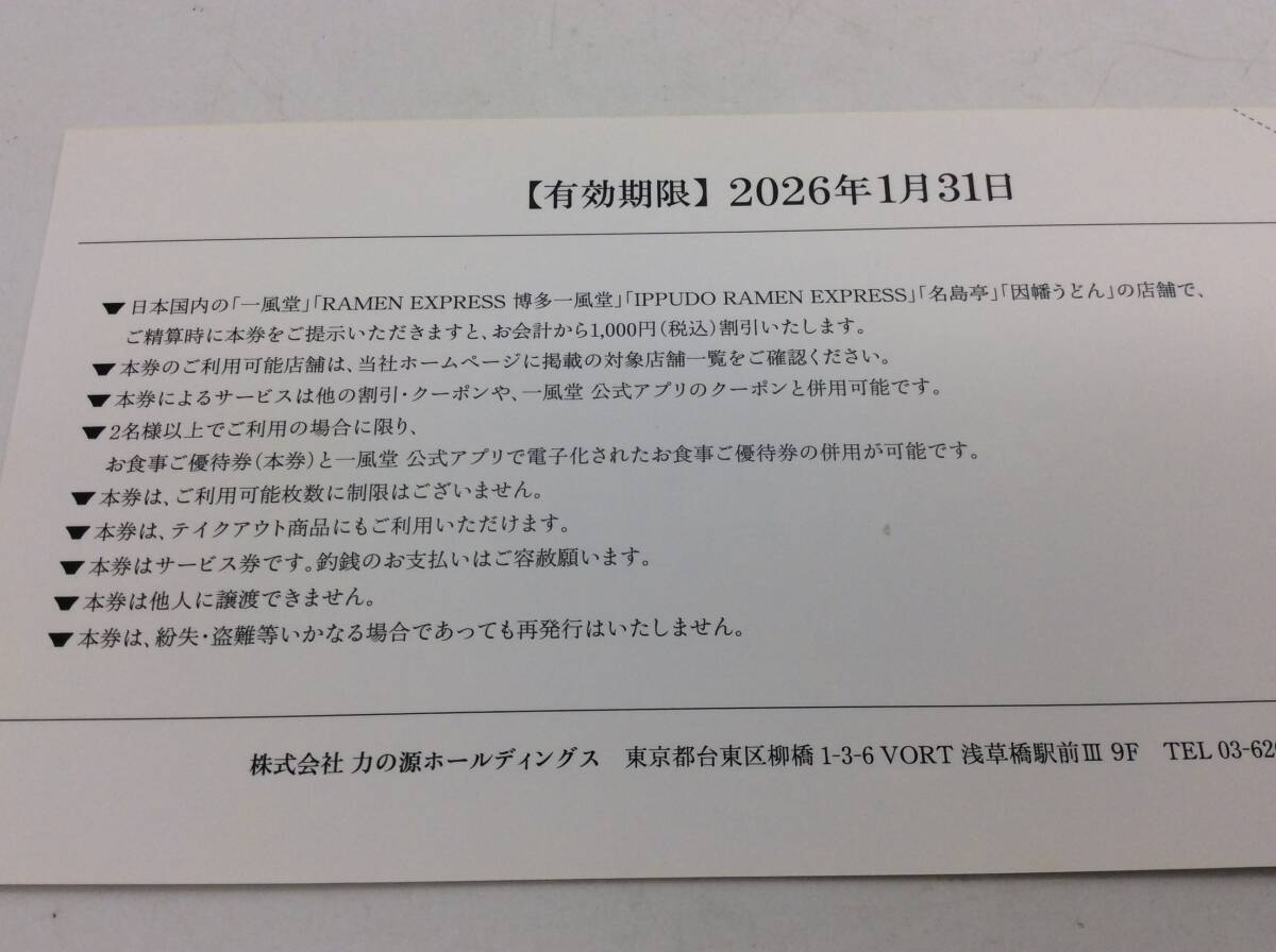 #3968 株式会社 力の源ホールディングス CHIKARA NO MOTO お食事ご優待券 額面1000円 有効期限2026.1.31 8枚おまとめ