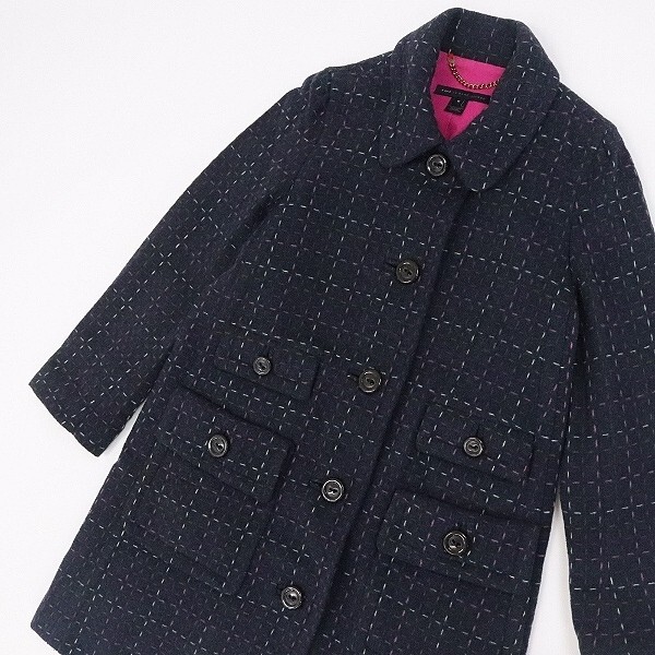 | 【HB372】◆MARC BY MARC JACOBS マークバイ マークジェイコブス ステッチ チェック柄 ウール コート 紺 ネイビー M | |