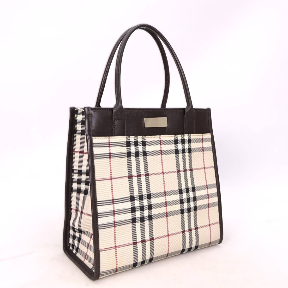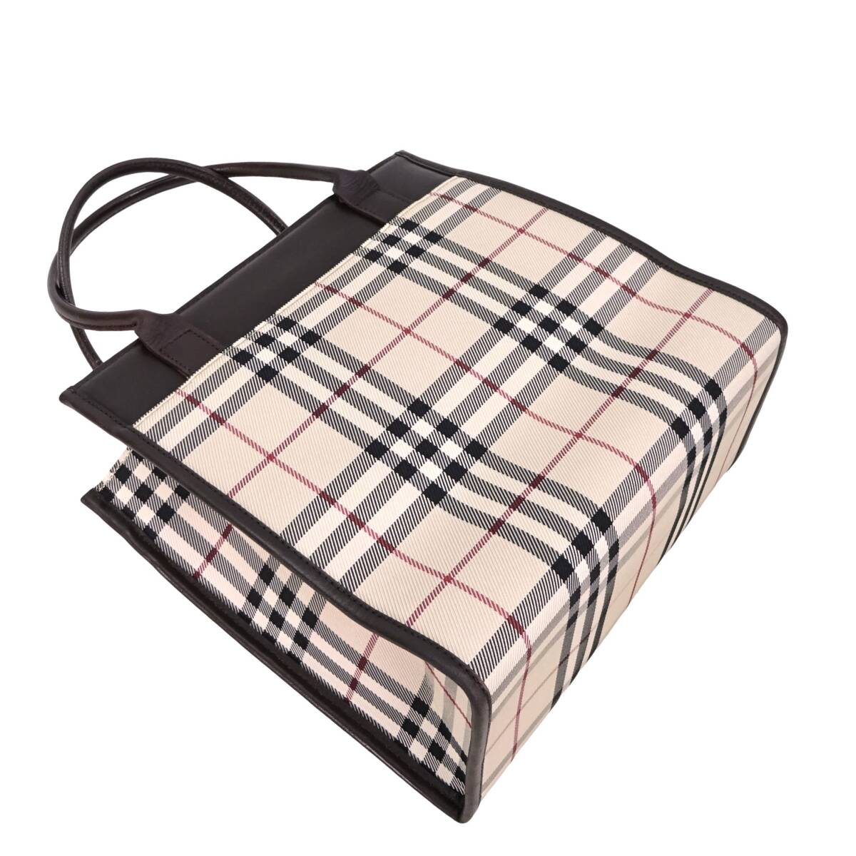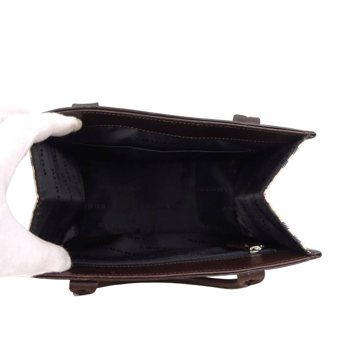 本物 美品 ■バーバリー■ベージュ ノバチェック キャンバス ブラウン レザー ハンドバッグ ミニ トートバッグ