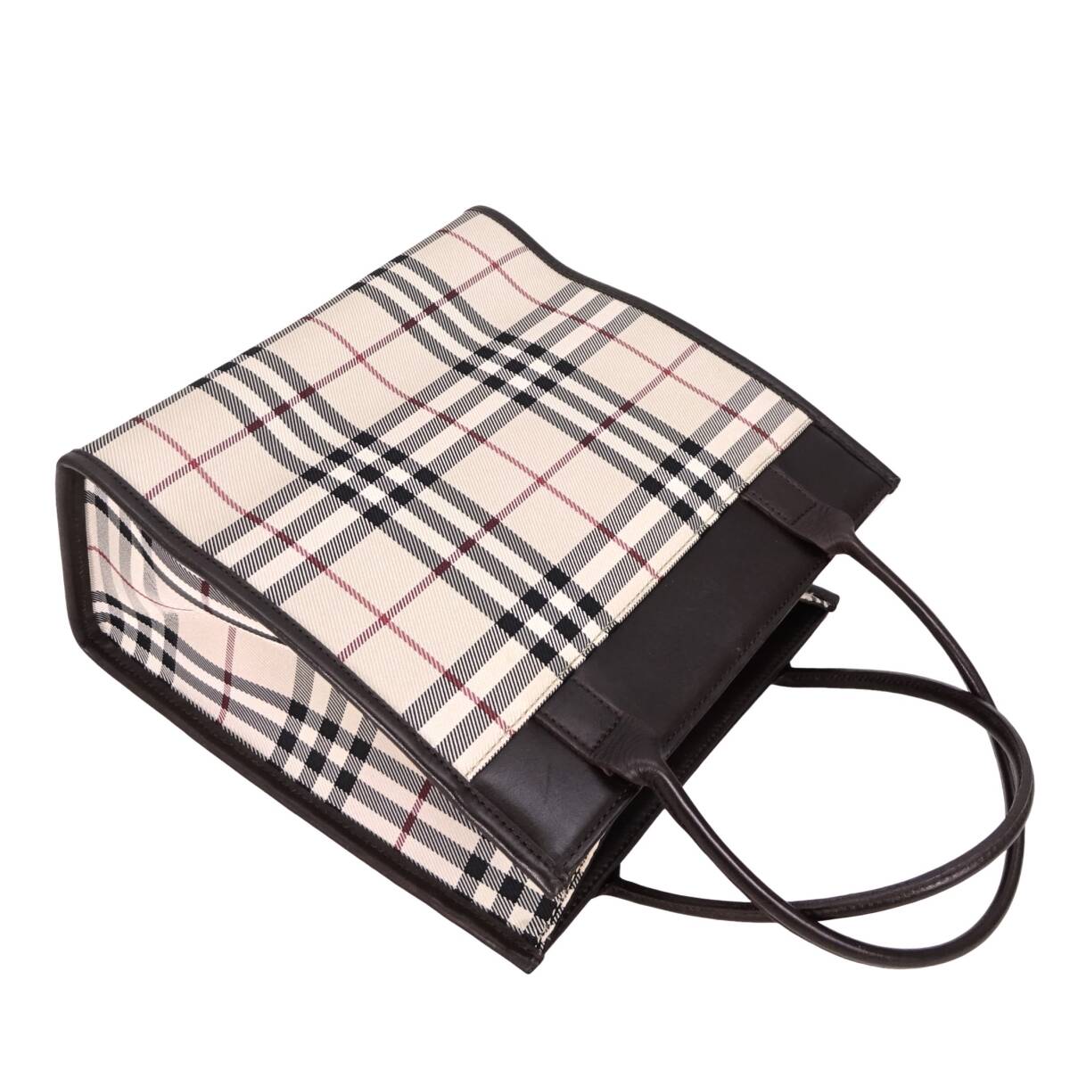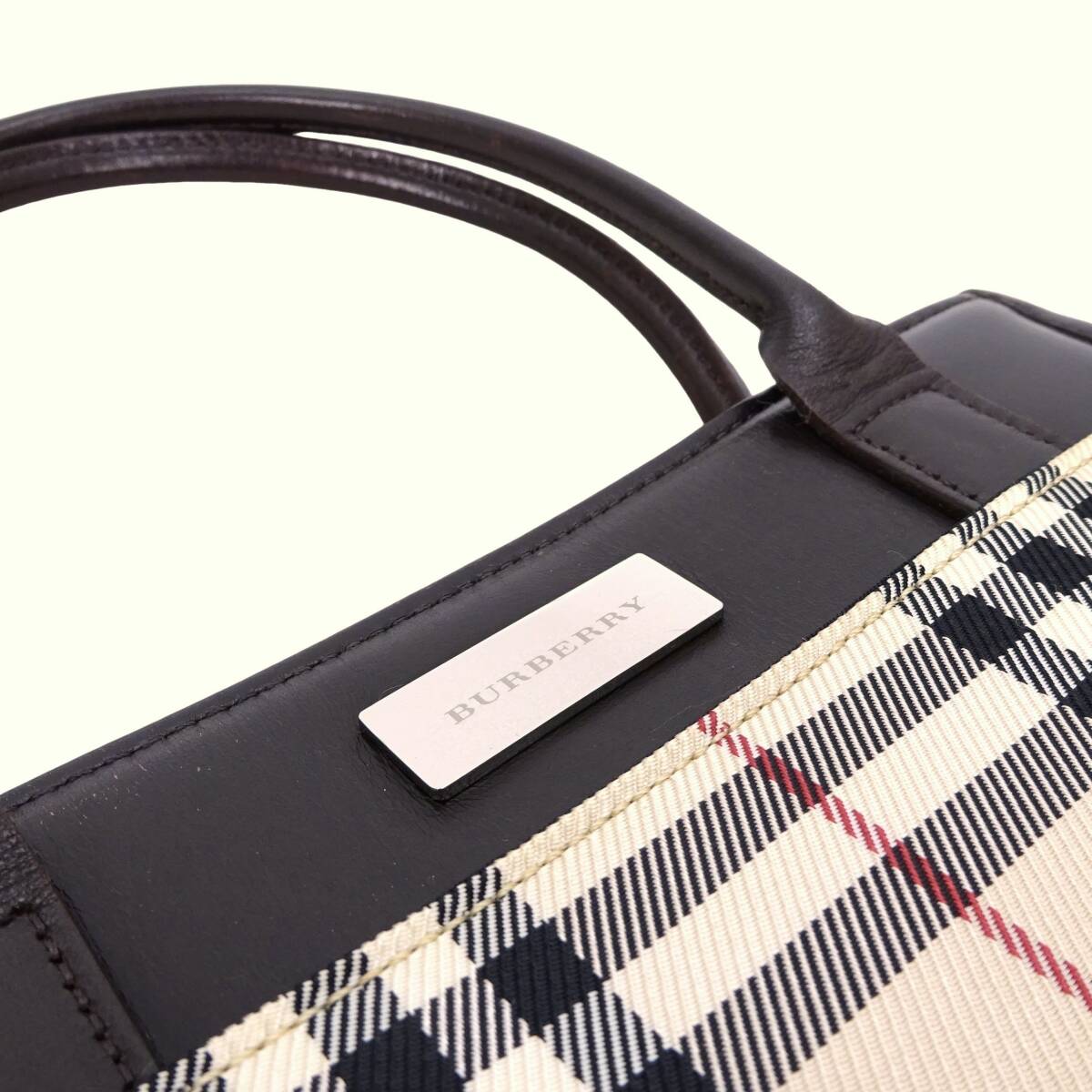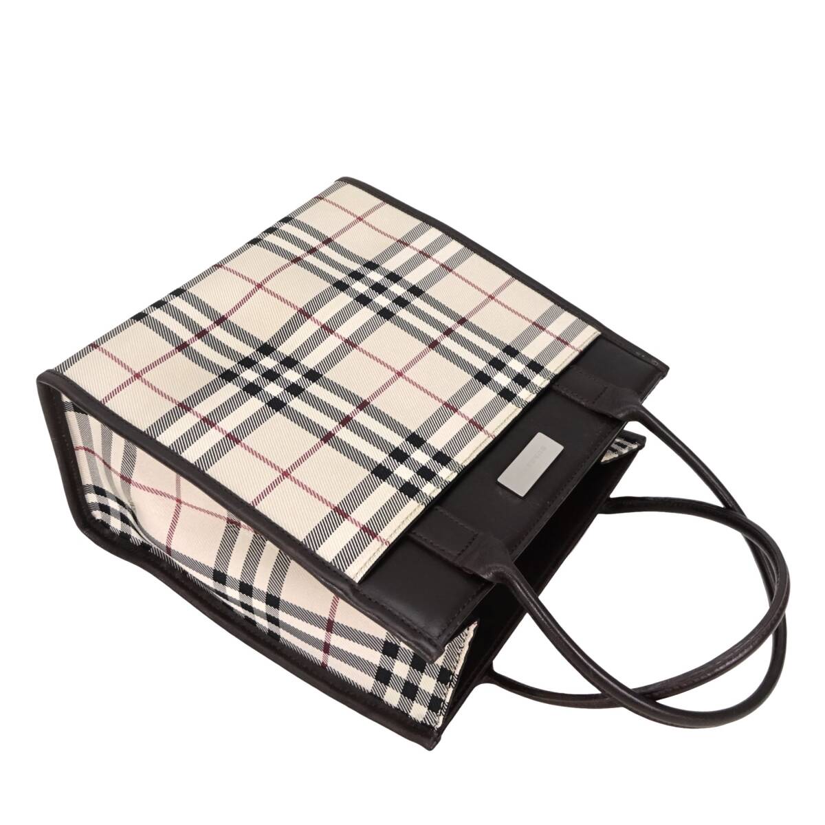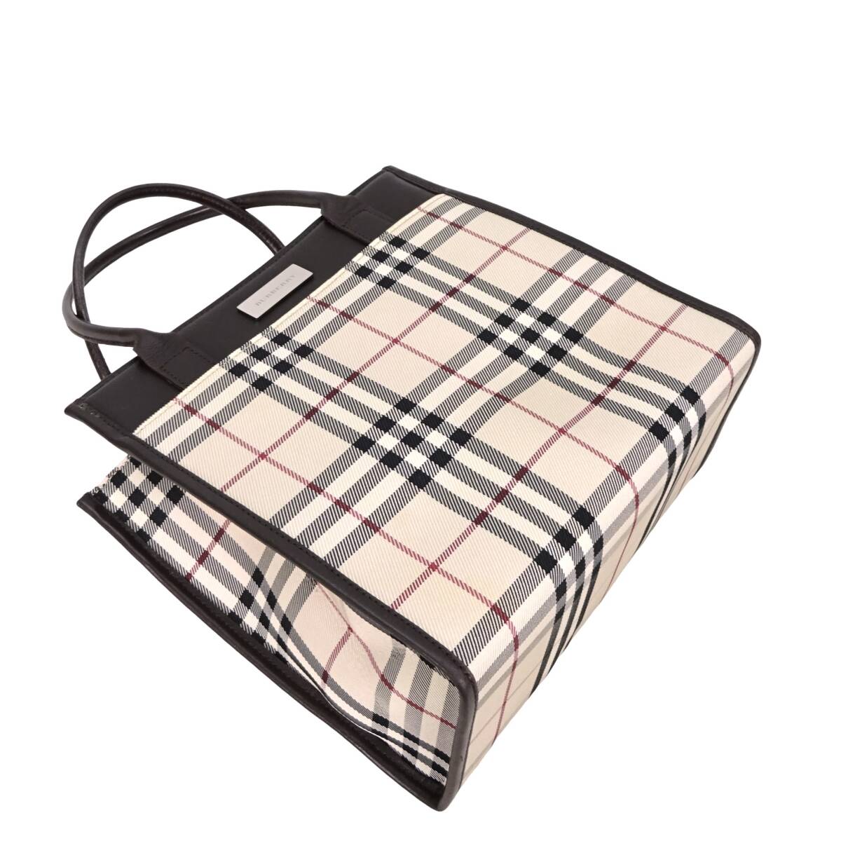 本物 美品 ■バーバリー■ベージュ ノバチェック キャンバス ブラウン レザー ハンドバッグ ミニ トートバッグ